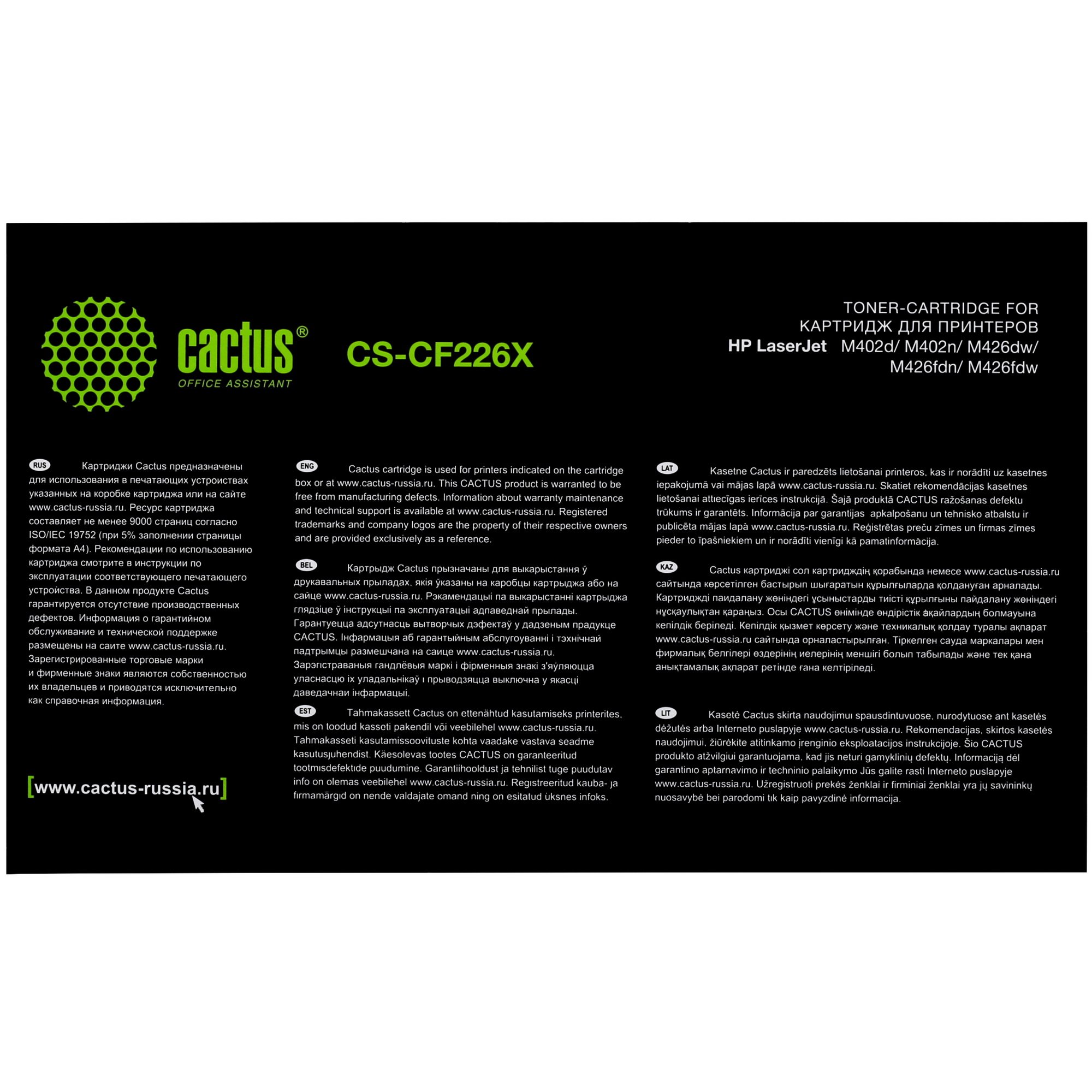 Картридж лазерный Cactus CS-CF226X черный, для HP LJ M402d/M402n/M426dw/M426fdn/M426fdw (9000стр.) (аналог CF226X)