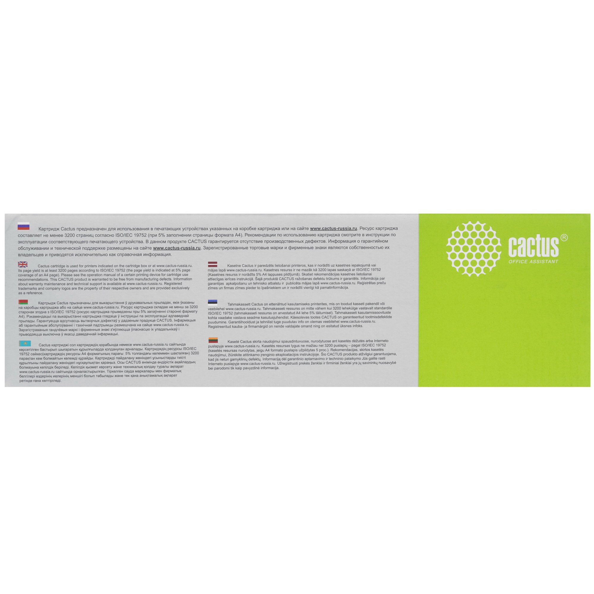 Картридж лазерный Cactus CS-CF540X содержит тонер черного цвета. Ресурс расходного материала оценивается производителем в 3200 страниц. Это ориентировочные данные для 5-процентного заполнения страницы формата A4. Картридж упакован в картонную коробку, имеющую привлекательный внешний вид.