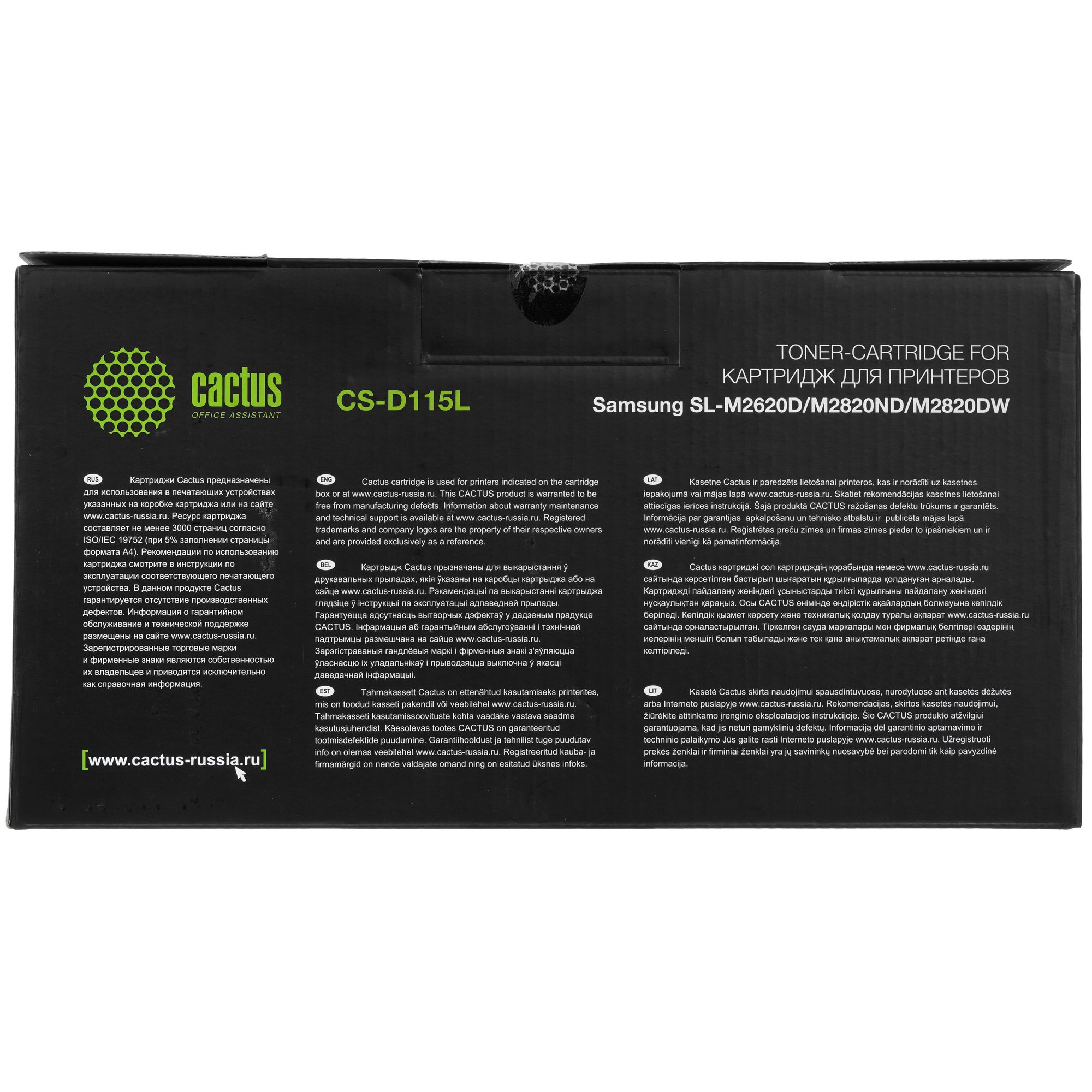 Cactus CS-D115L разработан по последним технологиям и изготовлен из качественных японских материалов. Картридж сделан по стандартам STMC и ISO, подходит для многократной эксплуатации и печати до 3000 страниц за одну заправку. Устройство легко установить и для использования при дальнейшей работе.
