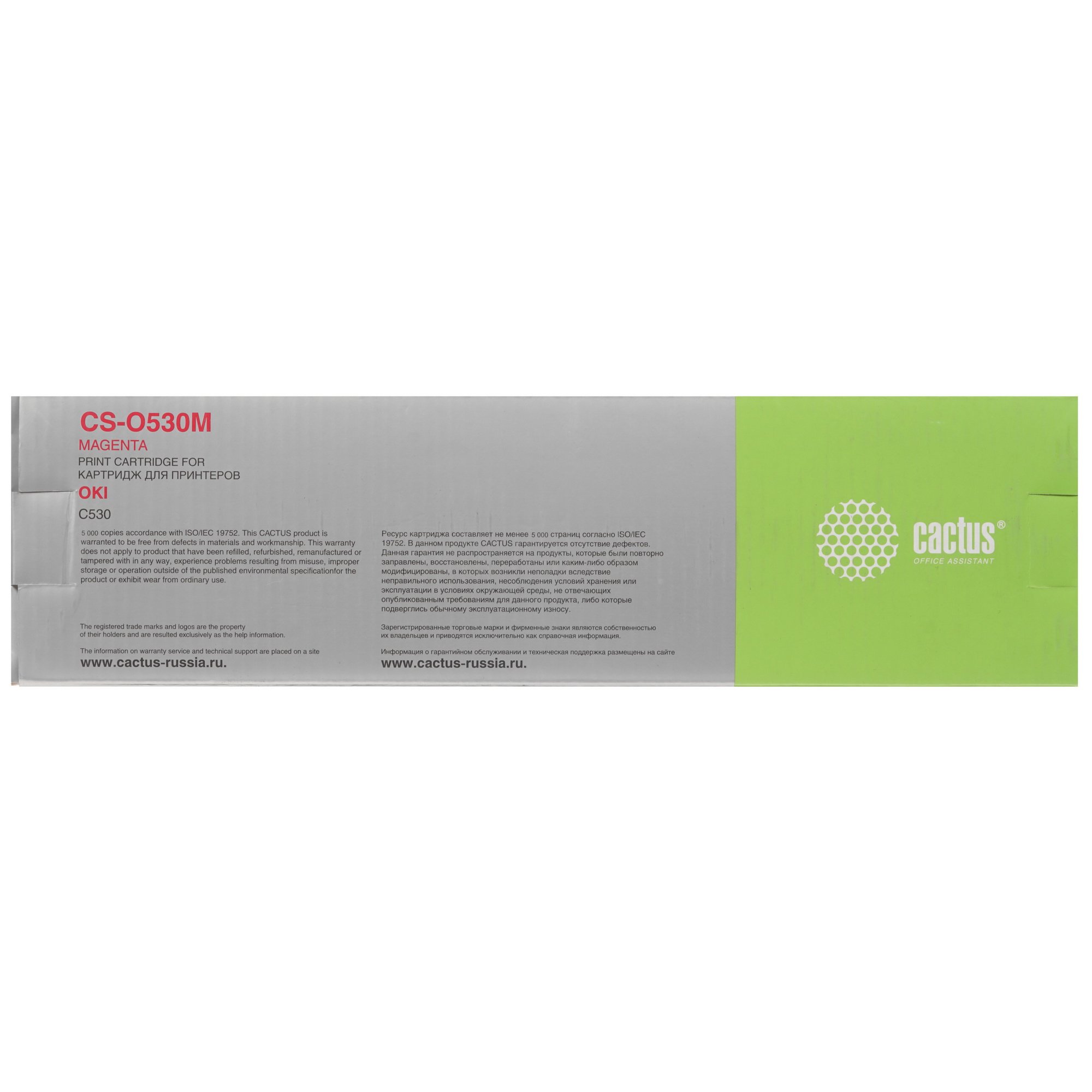 Тонер Cactus CS-O530M заправлен яркой пурпурной краской, моментально высыхающей в печи принтера. Особый состав чернил гарантирует отсутствие фантомных линий и смазываний. А картридж исключает неравномерное распределение краски, выгорание на солнце.