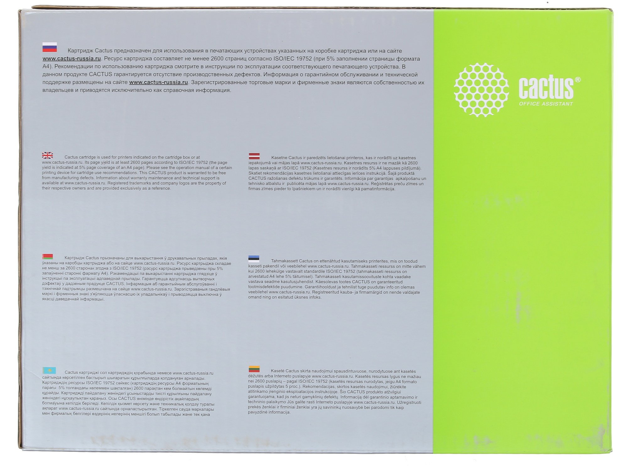 Картридж лазерный Cactus CS-SP200HE имеет ресурс, составляющий 2600 страниц. При невысокой и средней интенсивности печати расходного материала вам хватит на несколько месяцев. Картридж удобно хранить: он поставляется в прочной и компактной коробке. На упаковке, имеющей узнаваемый и привлекательный вид, размещена сопутствующая информация, в том числе – список совместимых моделей печатающих устройств.