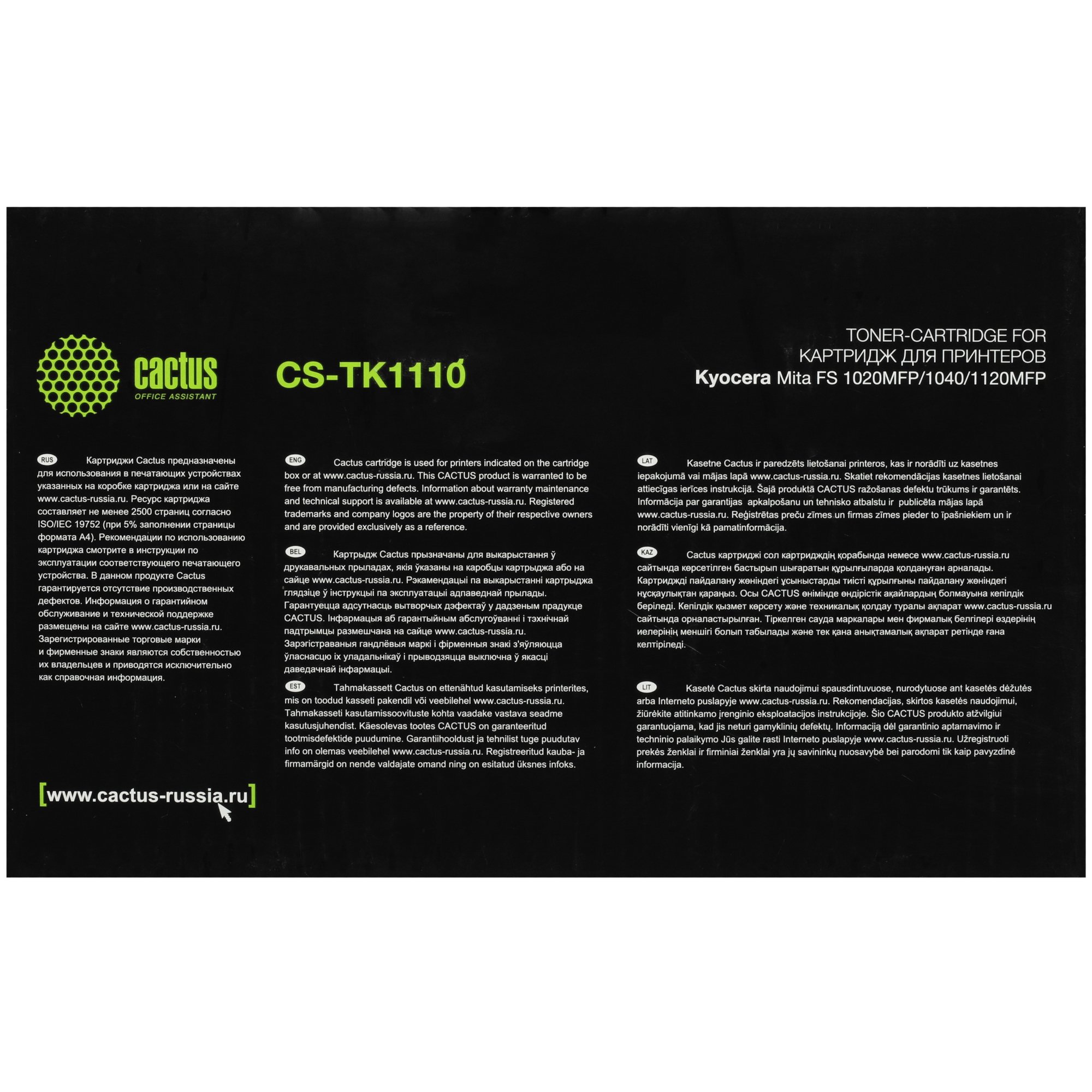 Картридж лазерный Cactus CS-TK1110BK – расходный материал, в котором предусмотрена специальная конструкция, обеспечивающая повышенную защиту.