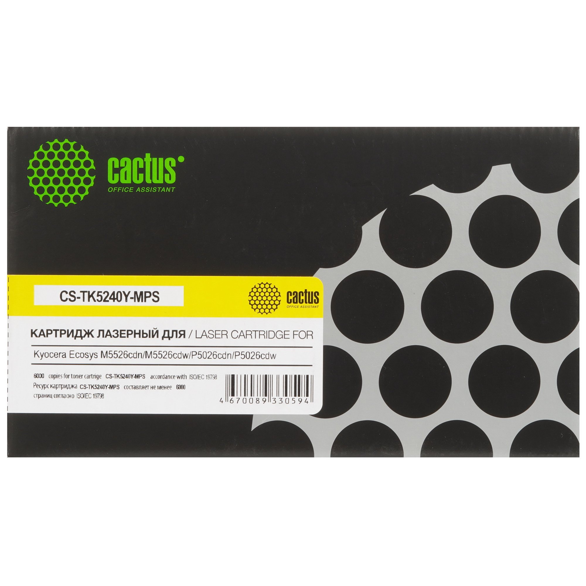 Картридж лазерный Cactus CS-TK5240Y-MPS желтый (6000 стр.) для Kyocera Ecosys M5526cdn/M5526cdw/P5026cdn/P5026cdw