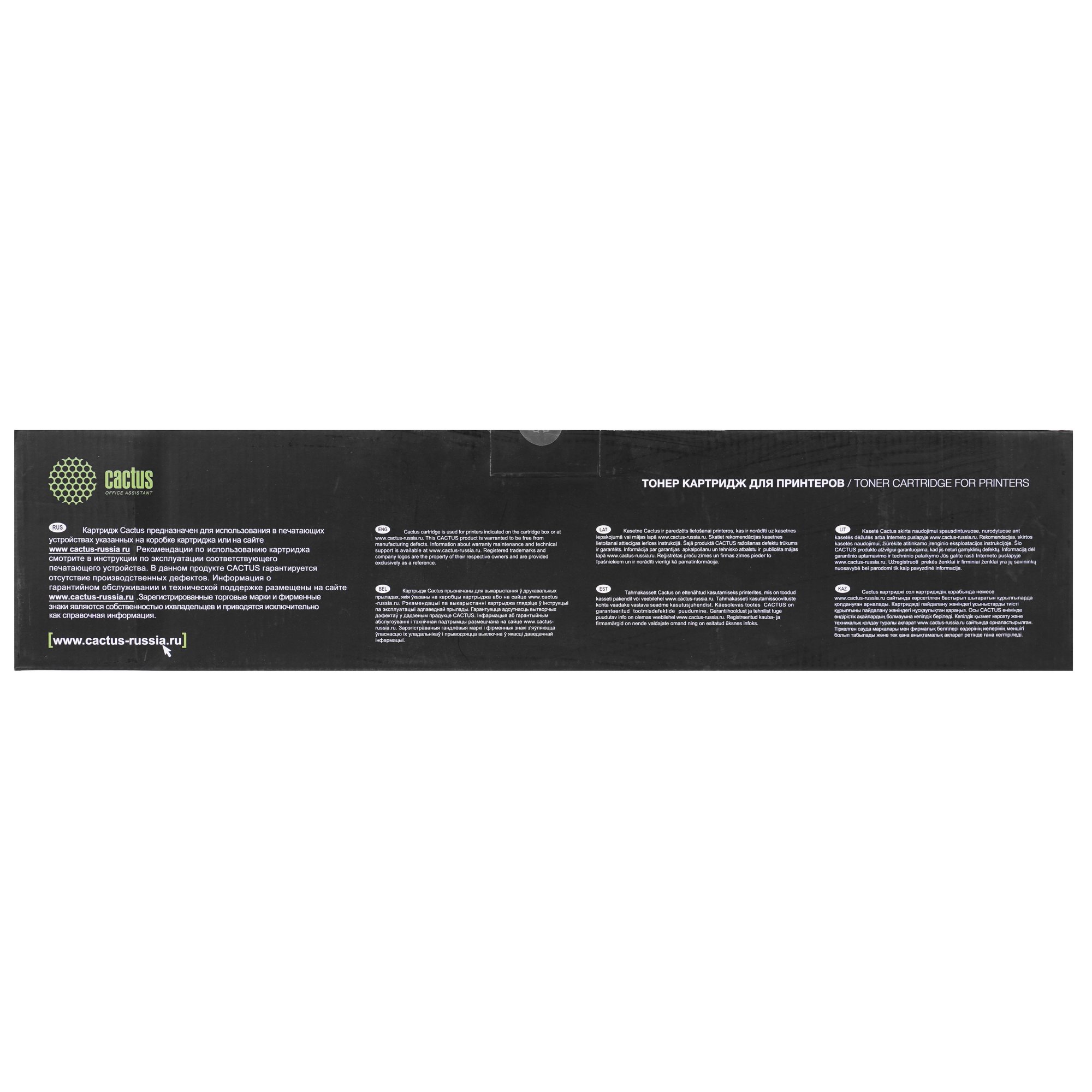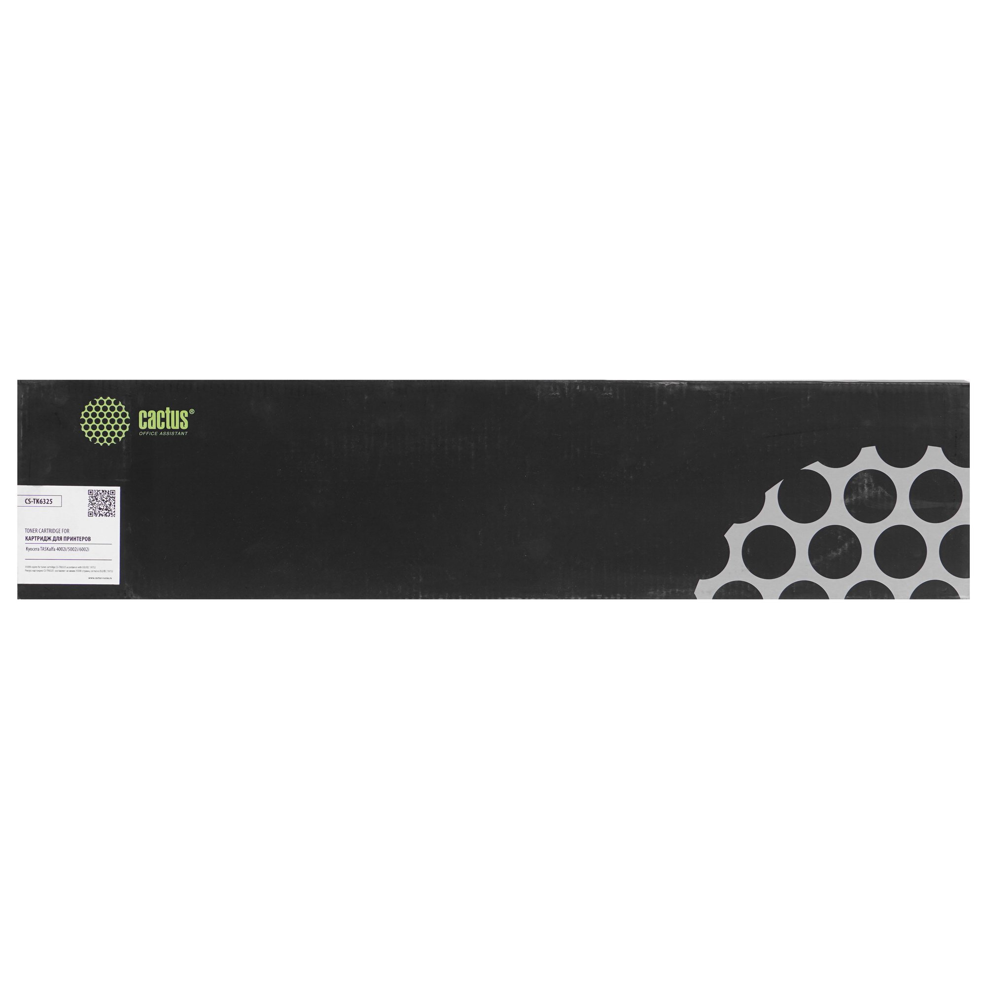 Cactus CS-TK6325 использует черный краситель. Он хранится в отдельной емкости в тонерном отсеке. Там же размещен магнитный вал и элементы для работы с тонером. В другой части картриджа находится фотобарабан, отсек для отработанного порошка и прочие детали для переноса красителя на бумагу. Краситель содержит намагниченные частицы, за счет чего притягивается к поверхности фотовала. Там он расплавляется для дальнейшего переноса на бумагу.