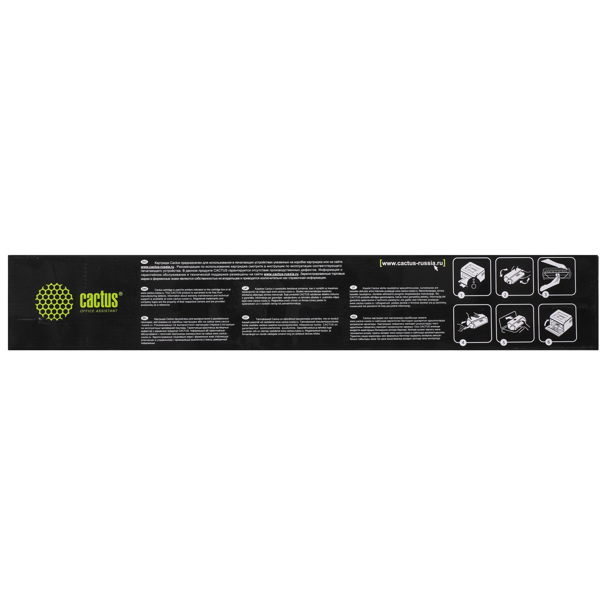 Cactus CS-TK6345 наполнен черными чернилами, которые высыхают после попадания на лист бумаги и формируют четкие символов. Изделие подходит для создания листовок, плакатов, документов, постеров и другой печатной продукции.