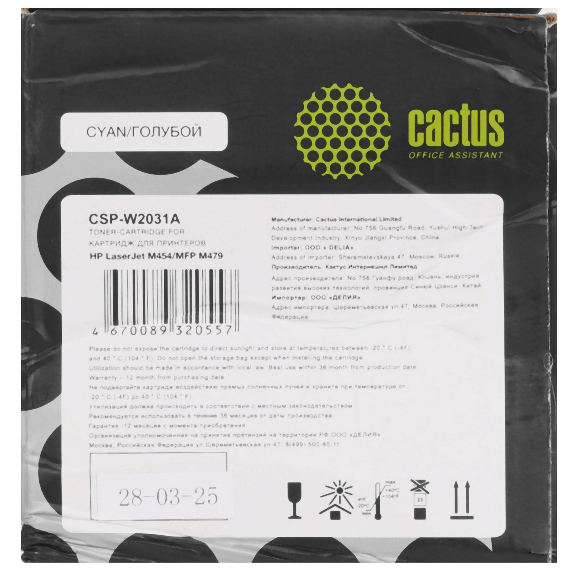 Картридж лазерный Cactus CSP-W2031A голубой (2100стр.) для HP LJ M454/MFP M479