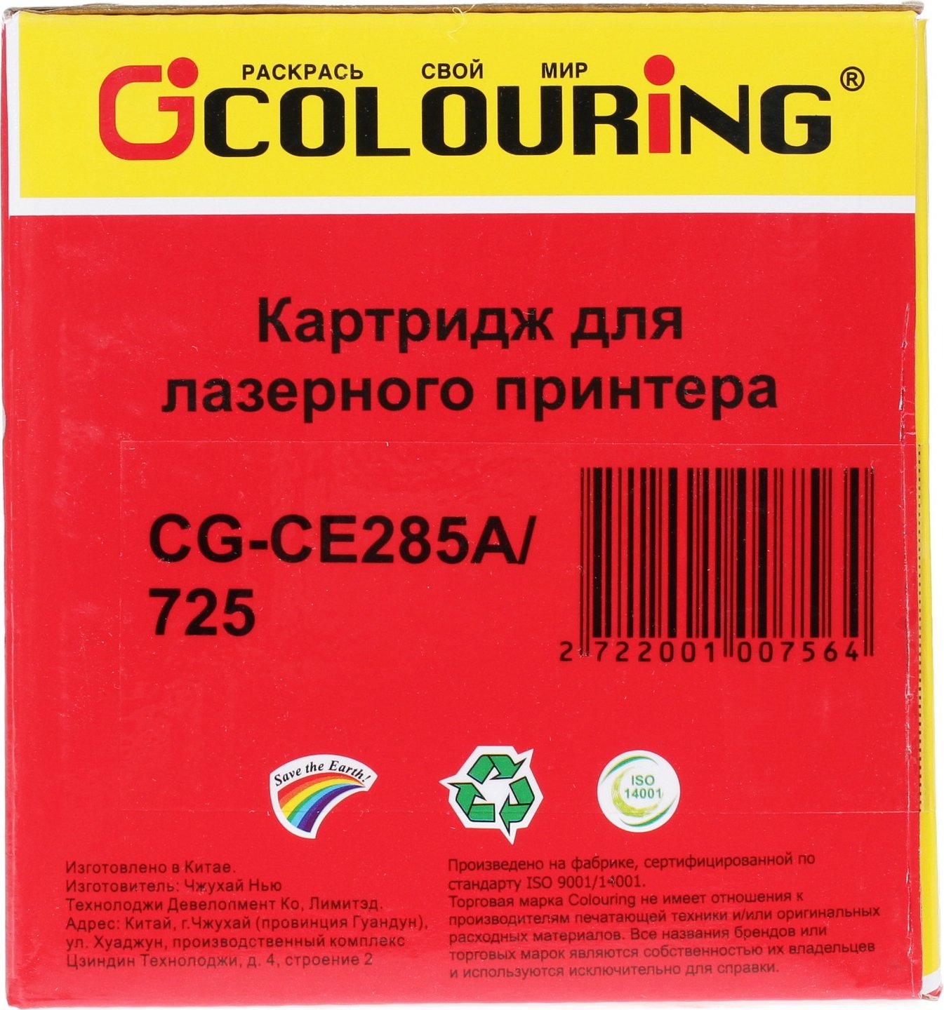 Картридж лазерный Colouring CG-CE285A/725 (тип CE285A/725) черный (1600 стр.) для HP LJ Pro P1100/P1102/P1102W/M1130/M1132/1210/M1212nf/M1212nfw/M1217 MFP/Canon LBP6018/6000