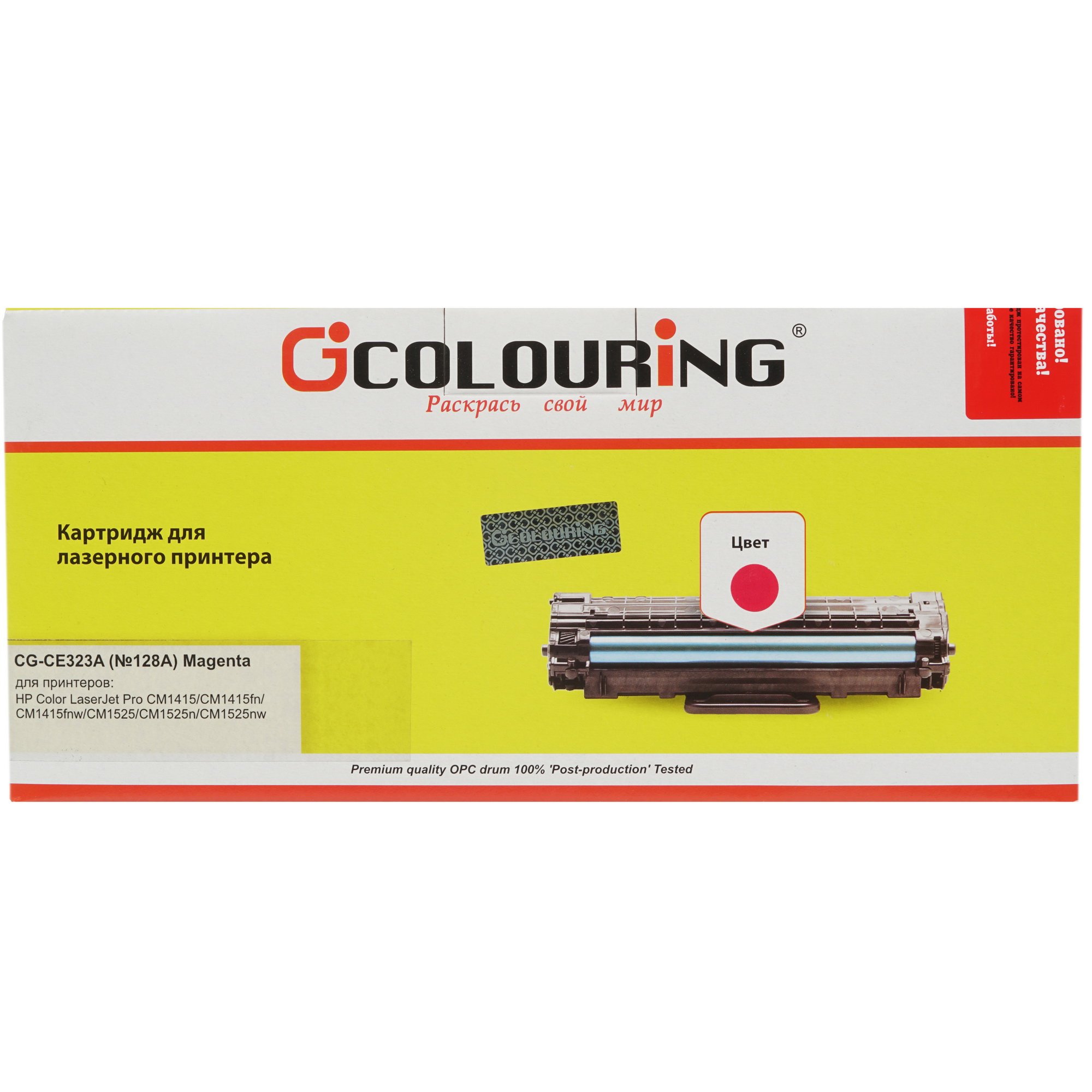 Картридж лазерный Colouring CG-CE323A является совместимым расходником и подходит для принтеров HP (модели указаны на упаковке). Все детали картриджа тестируются после изготовления, благодаря чему гарантируется его высокое качество. Установленный в печатающее устройство, он обеспечивает его стабильную работу. Пурпурный тонер, заправленный в картридж, предусматривает его использование для цветной печати (фотопечати).
