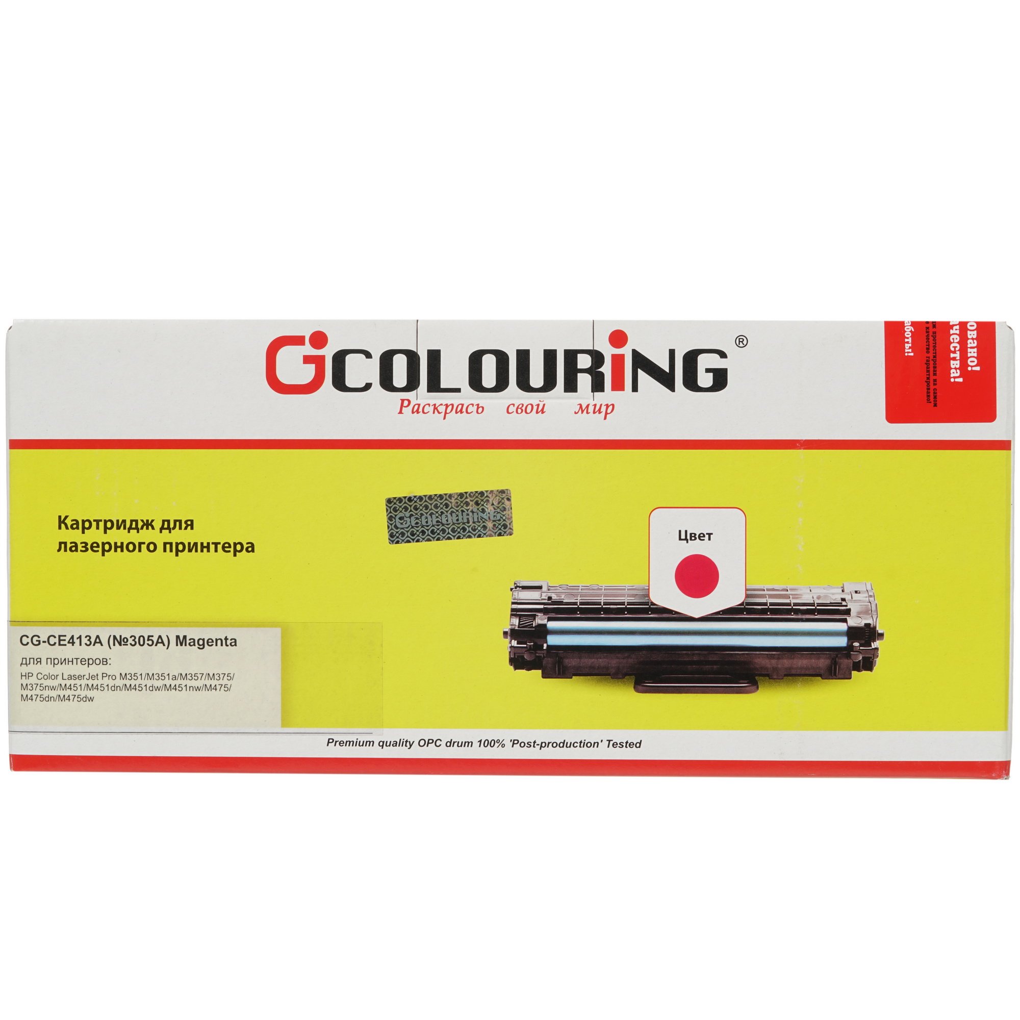 Картридж лазерный Colouring CG-CE413A (№305A) Magenta (2600 стр.) для HP Color LJ Pro M351/Pro MFP M475dn/M451dn/M451nw