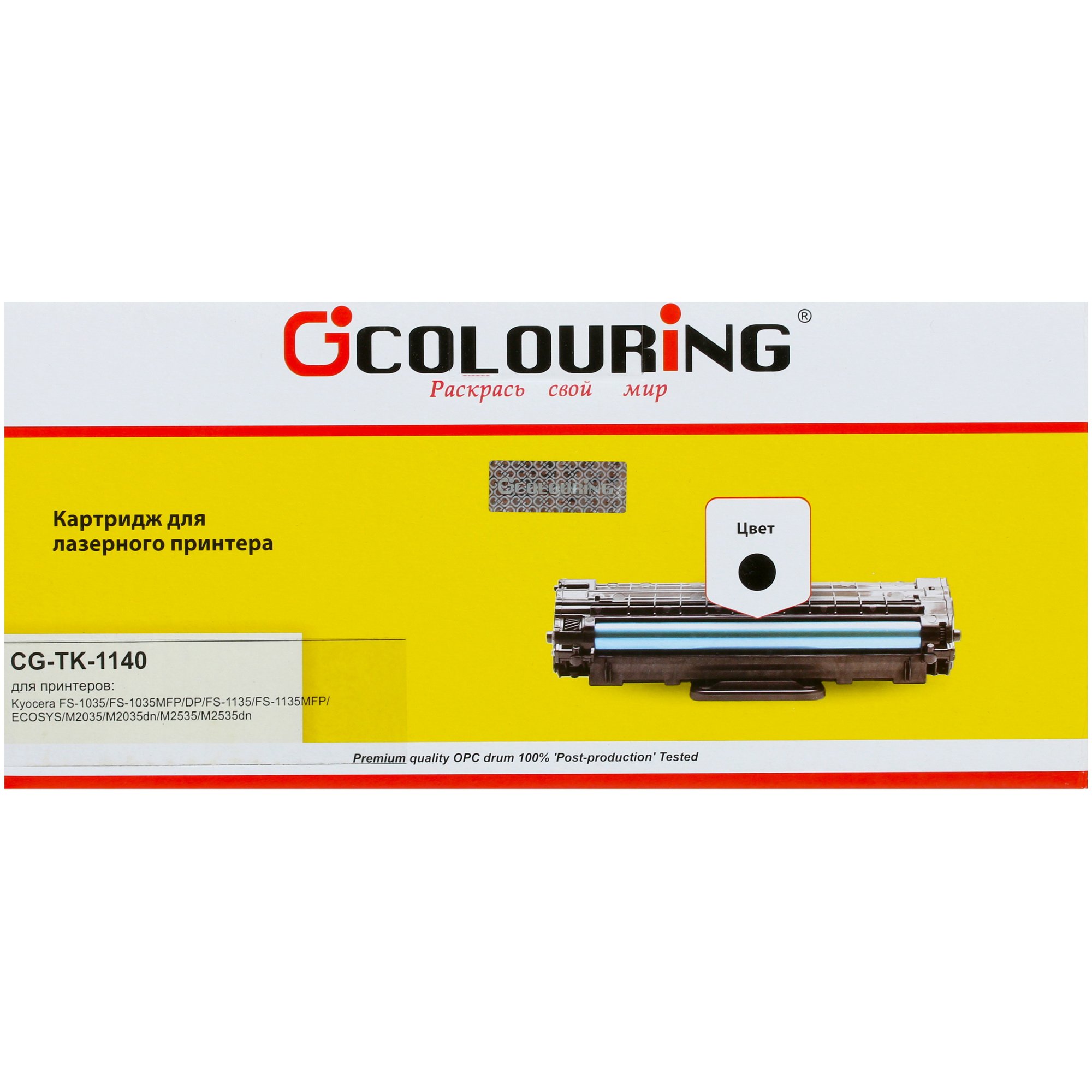 Картридж лазерный Colouring CG-TK-1140 обладает значительным ресурсом: величина данного показателя составляет 7200 страниц. Даже при интенсивной печати замена расходного материала будет происходить не так часто. Совместимое оборудование – техника Kyocera. Картридж подходит для комплектации 5 моделей этого производителя – FS-1035MFP/DP, ECOSYS M2035dn, ESOSYS M2535dn, FS-1035 MFP и FS-1035MFP/L.