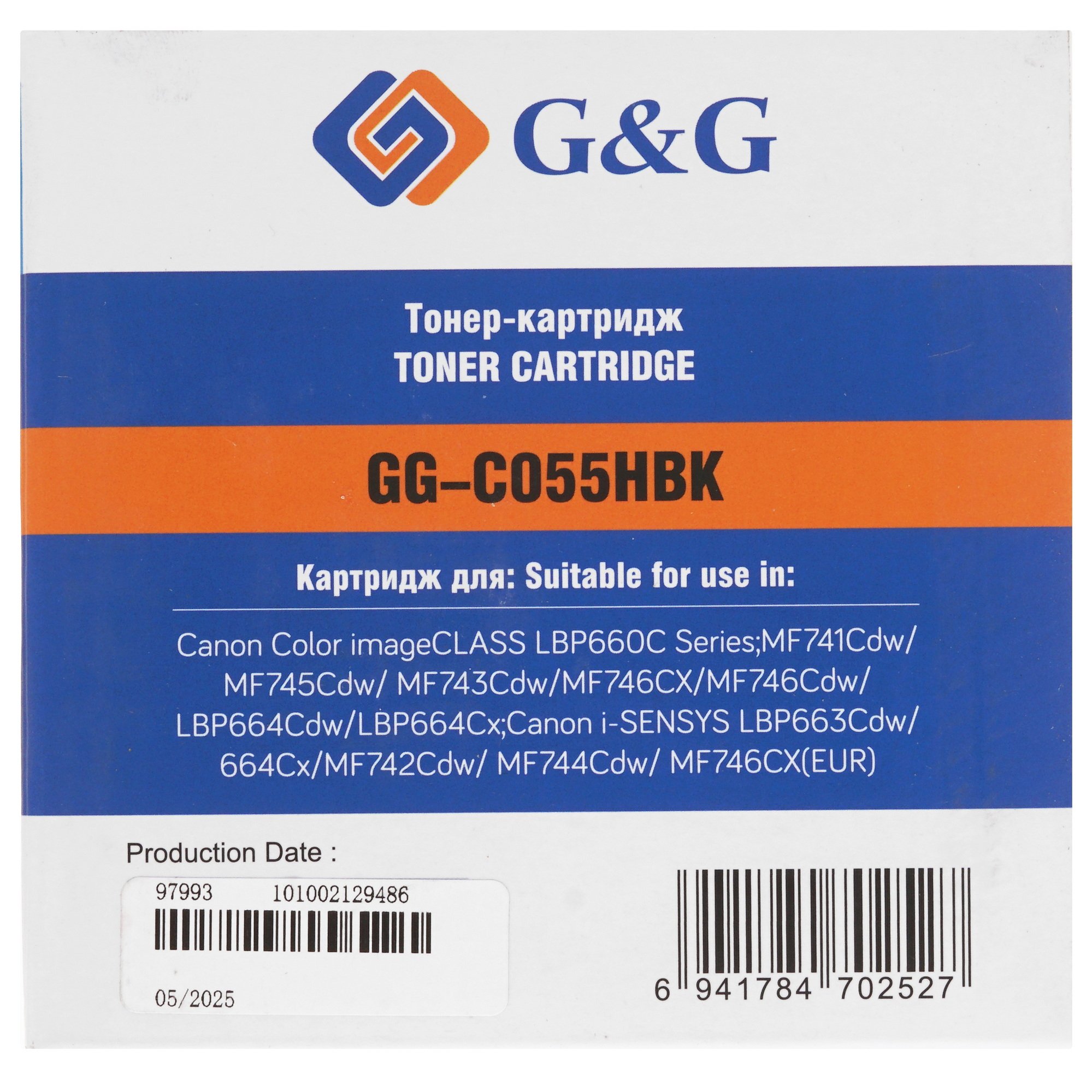 Картридж лазерный G&G GG-C055HBK черный (7600стр.) для Canon LBP663Cdw/LBP664Cx/MF746Cx/MF742Cdw/MF744Cdw