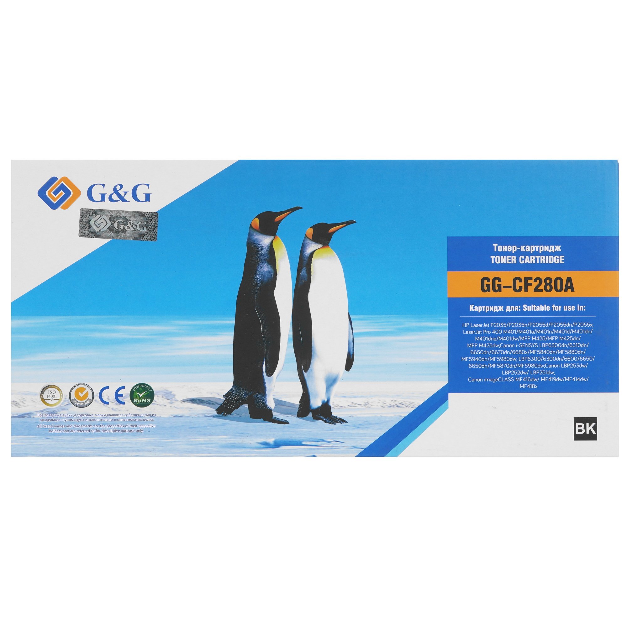 Черный лазерный картридж G&G GG-CF280A предназначен для комплектации принтеров и МФУ HP и Canon. Ресурса модели хватит на 2700 страниц при условии наполнения листа чернилами на 5%. В состав черной краски входит красящее пигментное вещество, которое гарантирует четкую печать текста и черно-белых изображений без искажения цвета, а также не растворяется при контакте с водой.