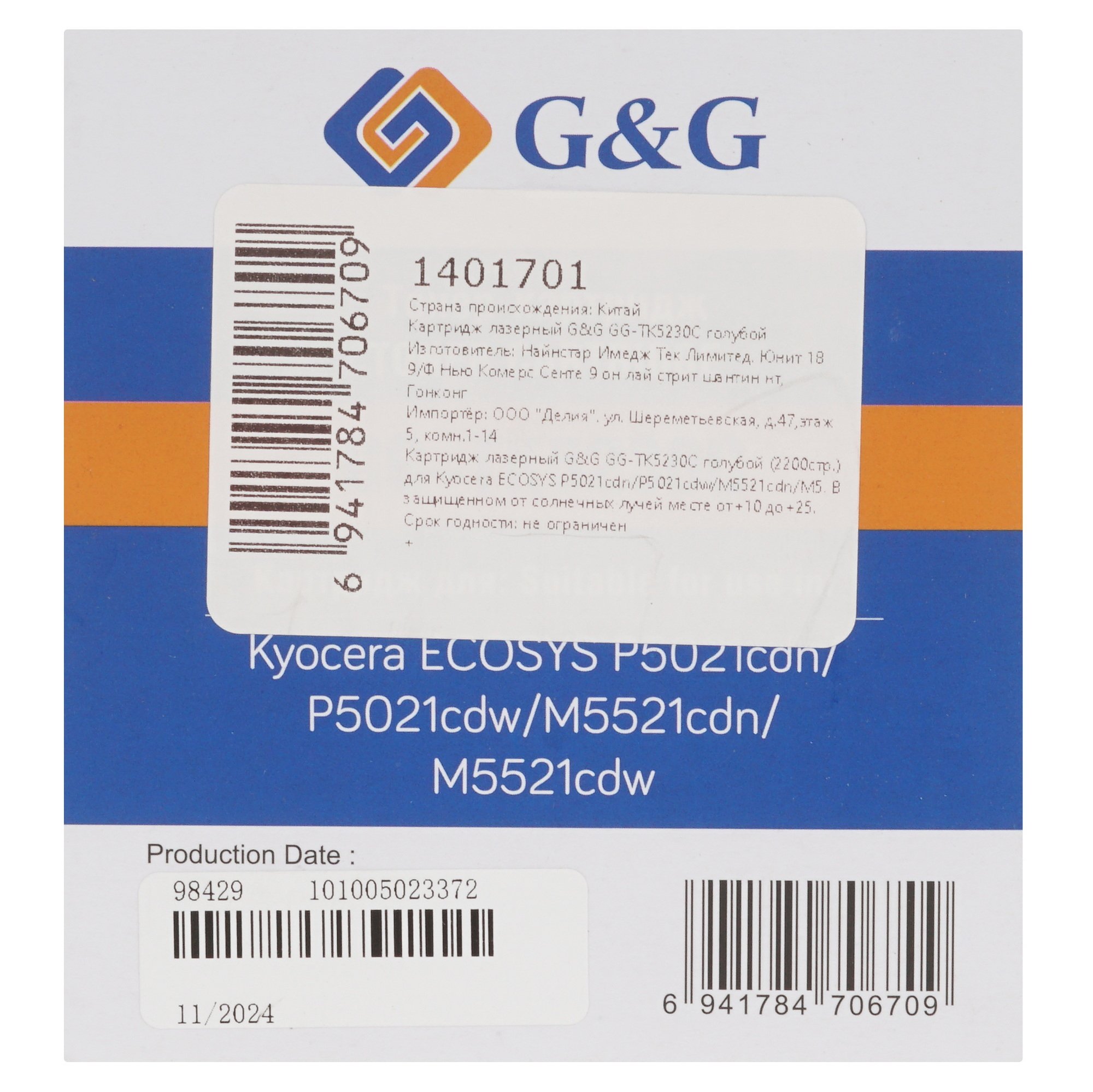 Картридж G&G GG-TK5230C голубого цвета используется в лазерных принтерах Kyocera ECOSYS. Совместимый компонент печатает без сбоев, копируя свойства оригинального картриджа Kyocera TK-5230C. Он удобен для офисных систем, где важна высокая скорость печати. Компонент рассчитан на печать 2200 страниц, не смазывает символы, не оставляет фантомных теней и полос.