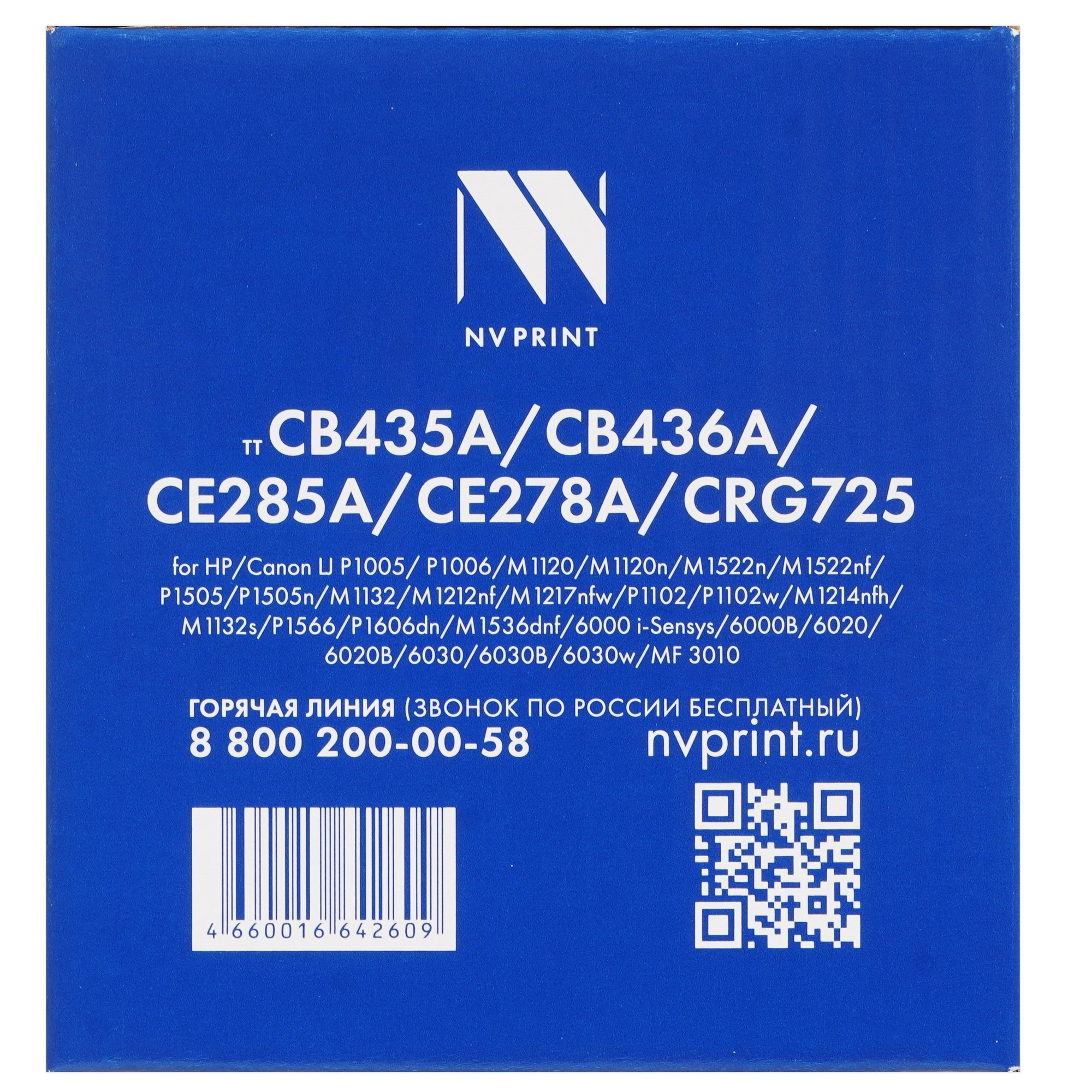Картридж лазерный NV-Print NV-CB435A/436/285/278/725 с черным тонером предназначен для черно-белой печати. Порошковая краска оставляет четкий след на бумаге разной плотности и типа, точно отображает буквы и мелкие детали. Ресурса картриджа хватает для печати 2000 страниц с заполнением чернилами 5% на листе A4.