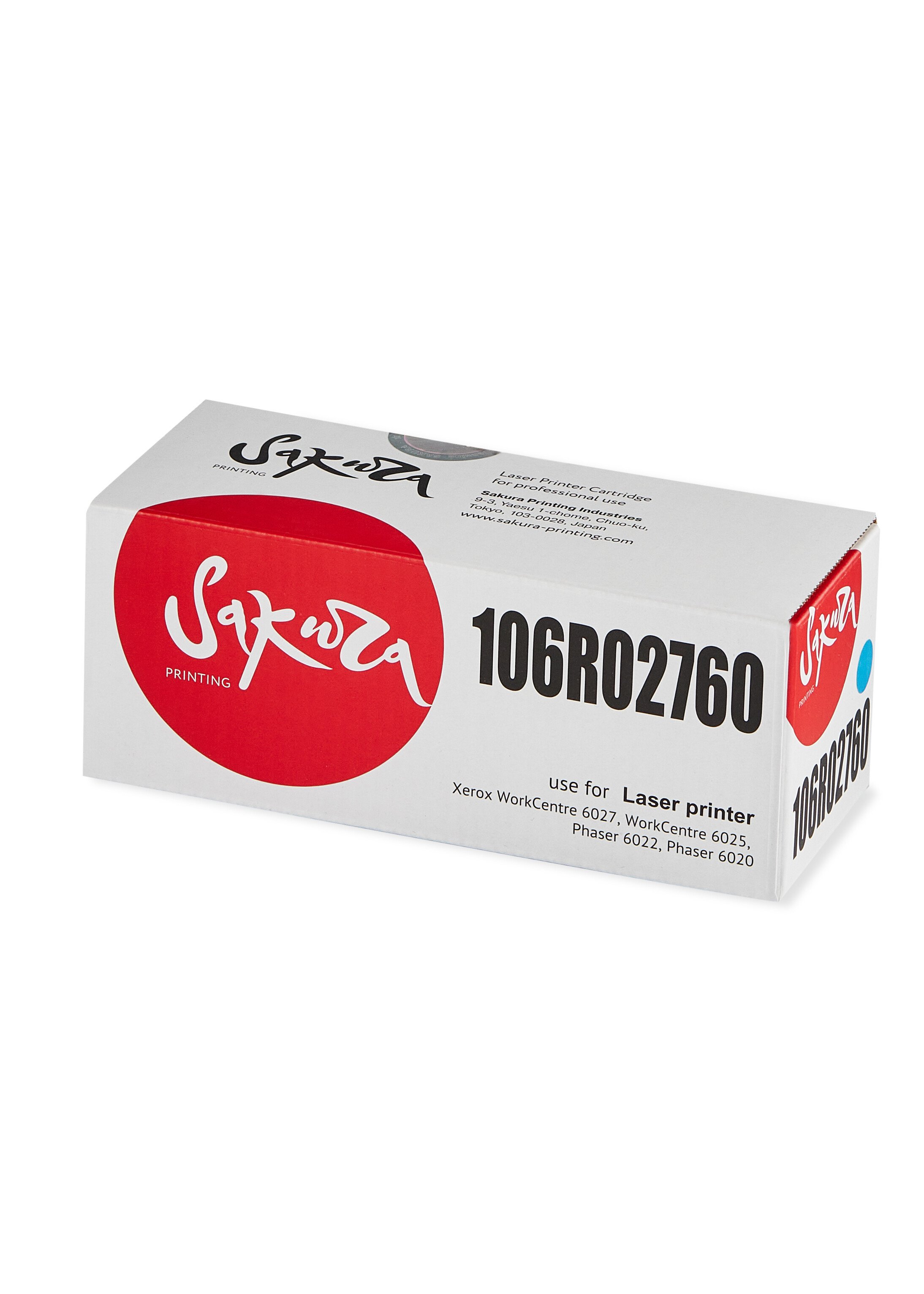 Картридж лазерный Sakura 106R02760 для Xerox WorkCentre 6027, WorkCentre 6025, Phaser 6022, Phaser 6020, синий, 1000 к.