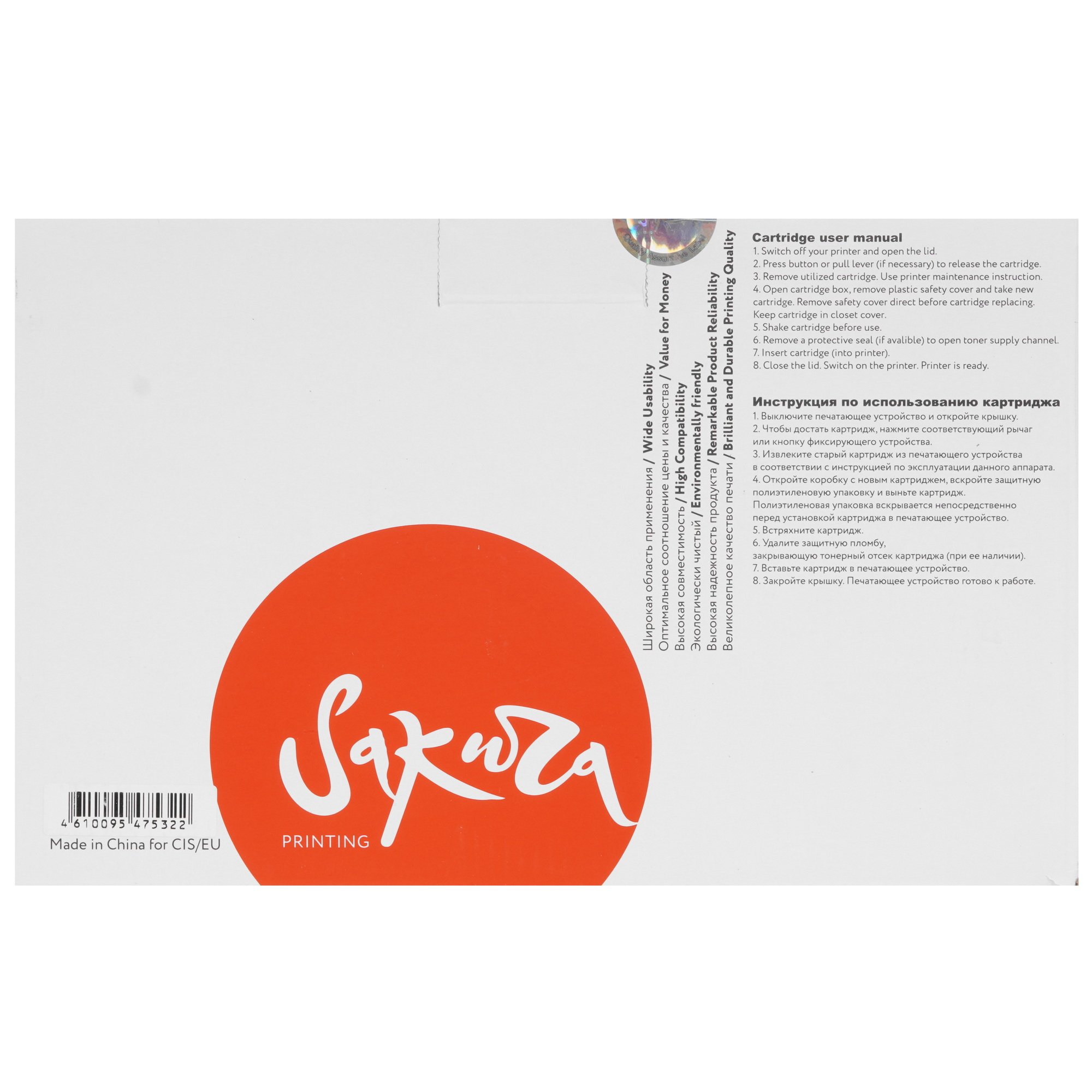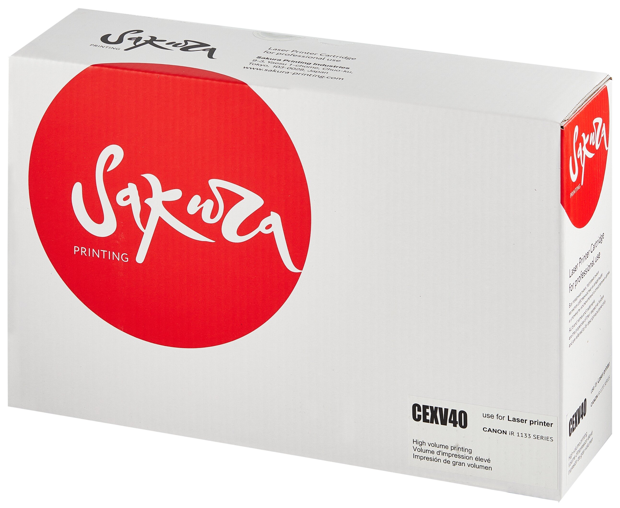 SAKURA CEXV40 оснащен стандартной емкостью с черными чернилами. Порошковая краска защищена от просыпания во время транспортировки и хранения лентой-пломбой. Тонер оставляет яркий и четкий оттиск, мгновенно засыхает на бумаге для защиты от стирания линий при выходе горячего листа из принтера.