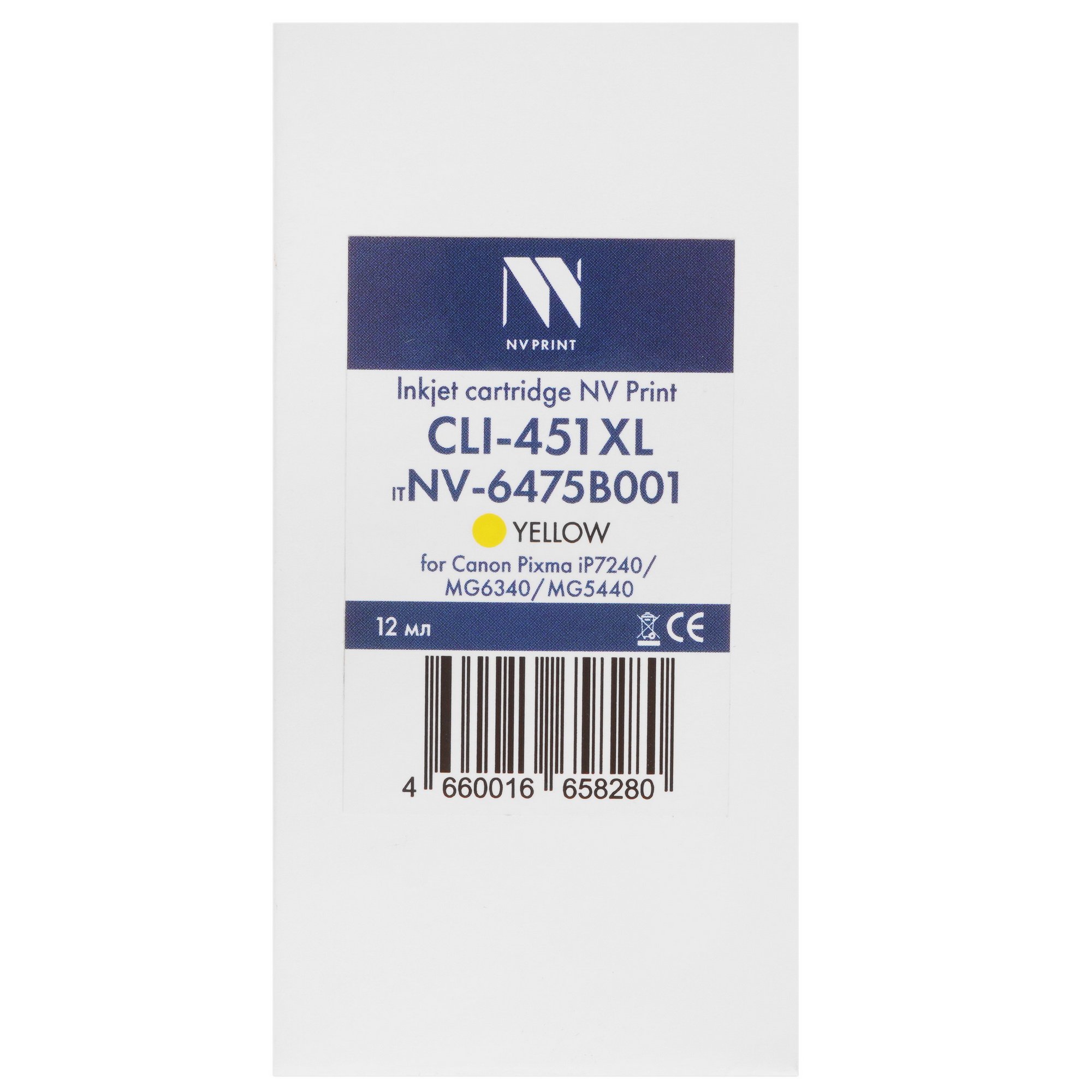Картридж струйный NVPrint CLI-451XL (NV-6475B001) Yellow для Canon Pixma iP7240/MG6340/MG5440 (12 мл)
