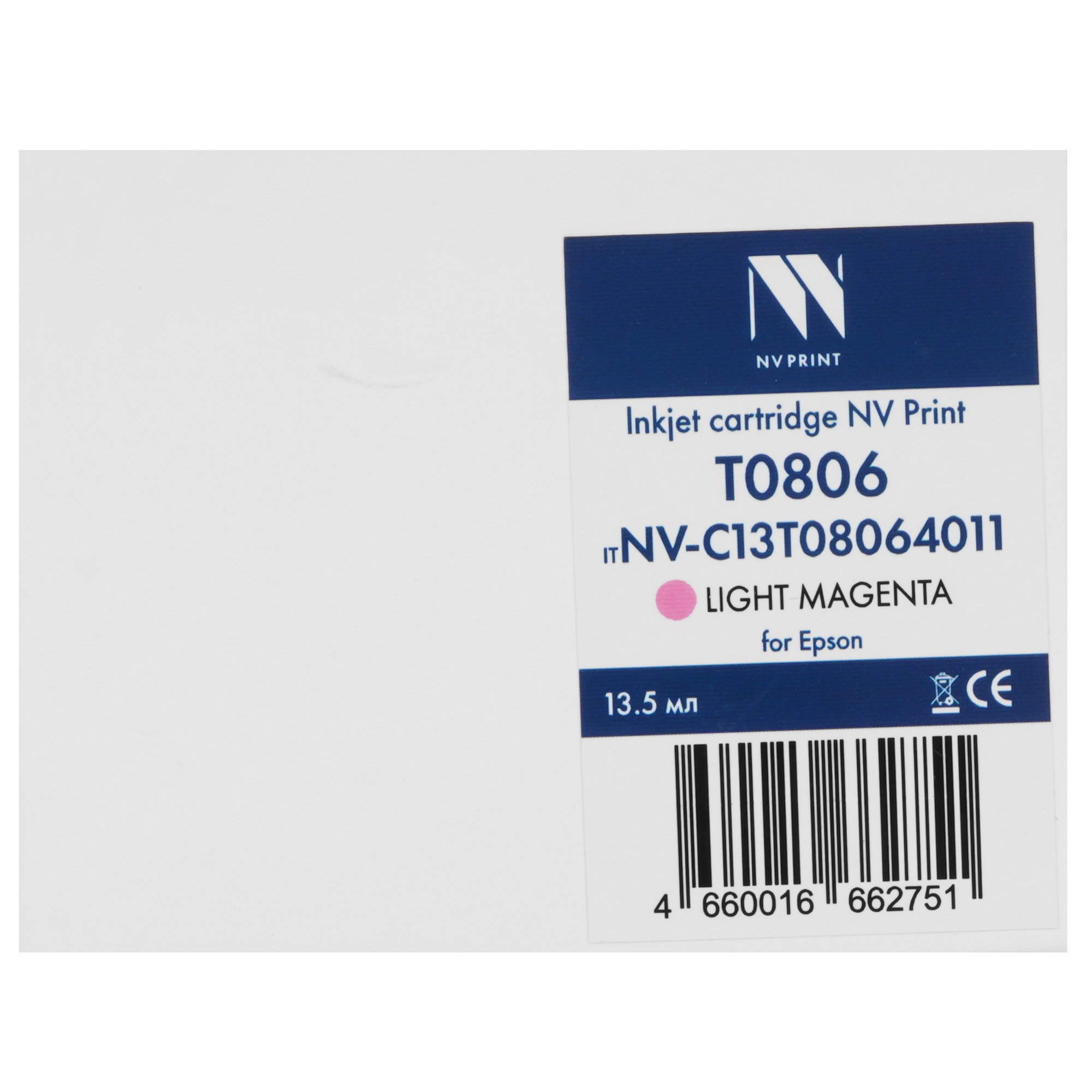 Картридж струйный NVPrint T0806 (NV-C13T08064011) Light Magenta для Epson Stylus Photo P50, PX650/PX660/PX700/PX710/PX720/PX730/PX800/PX810/PX820/PX830, R265/R285/R360/RX560/RX585/RX685n (13.5 мл) совместимый