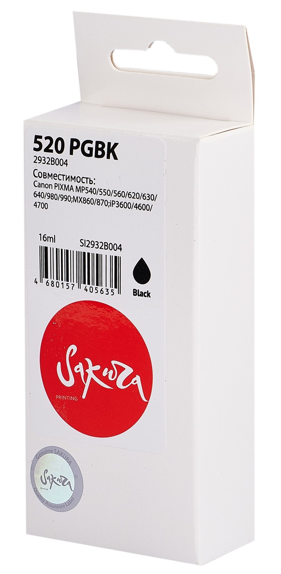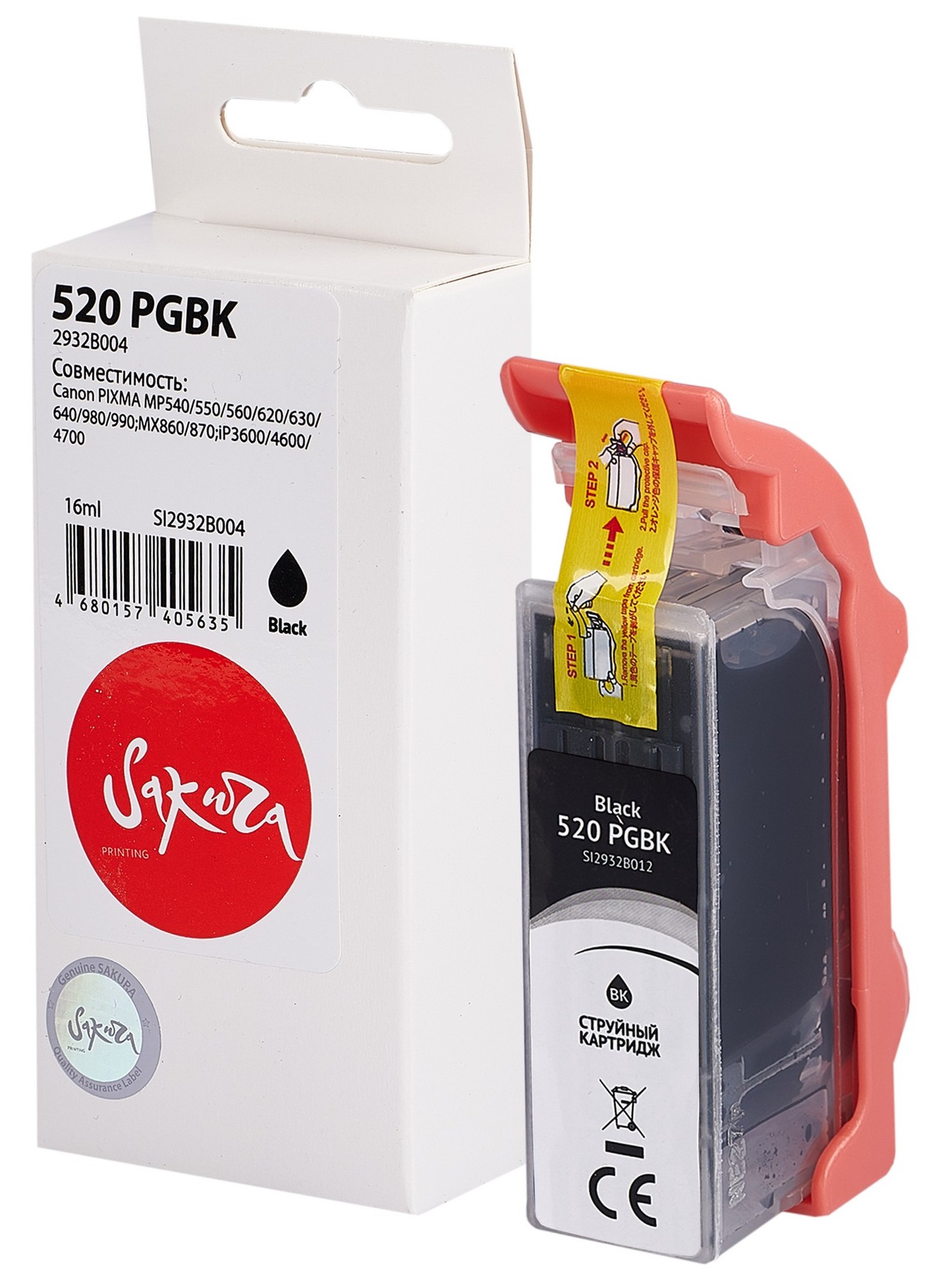 Картридж струйный Sakura 2932B004 (520 PG Black) для Canon, черный, 16 мл., 340 к.