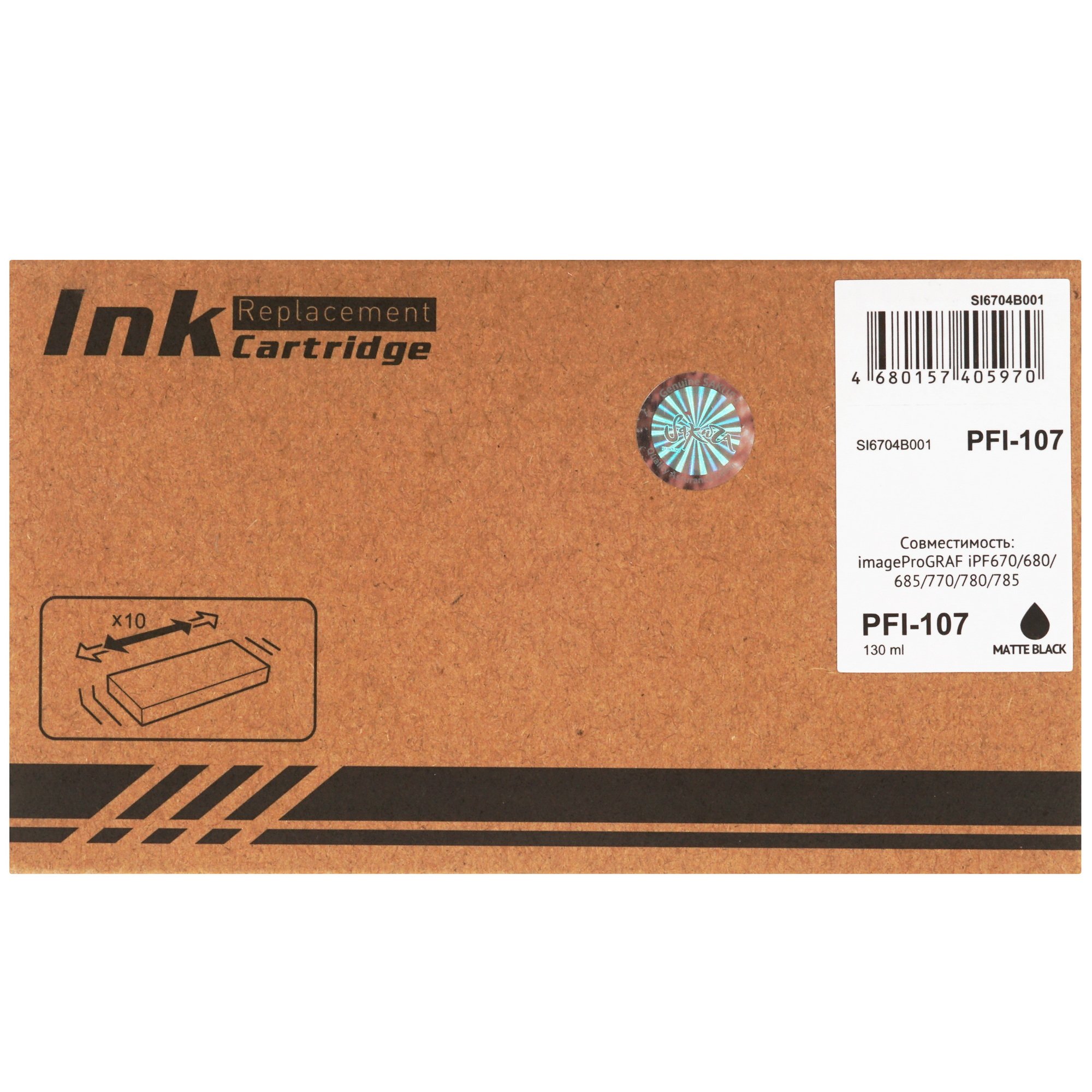 Картридж Sakura 6704B001 (PFI-107 MBK) имеет объем 130 мл. Он гарантирует стабильную и бесперебойную работу техники на протяжении всего ресурса службы. Конструкция картриджа делает удобным процесс установки и замены после использования.