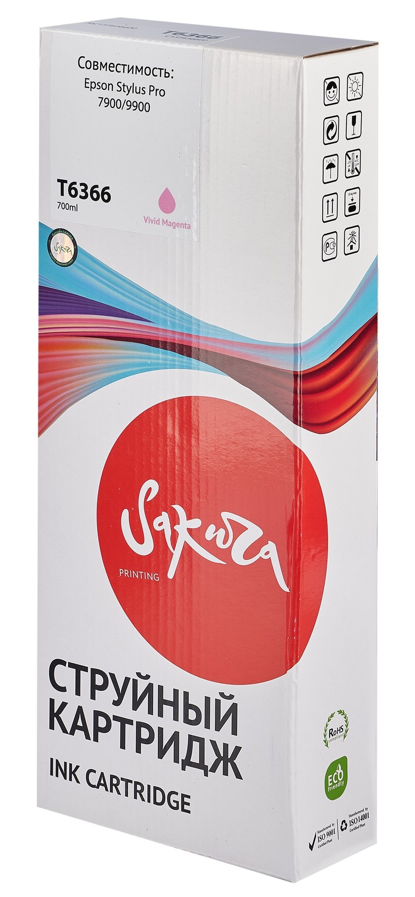 Картридж струйный Sakura C13T636600 (T6366 Vivid Light Magenta) – расходный элемент для струйных принтеров и МФУ фирмы Epson. Модель является совместимой, по своей конструкции она полностью идентична оригинальному картриджу и не уступает ему в качестве печати и стабильности работы печатной техники. Емкость с краской вмещает в себя 700 мл чернил на пигментной основе. В струйном картридже Sakura C13T636600 (T6366 Vivid Light Magenta) содержится краска светло-пурпурного цвета, которая не смазывается, не полосит и быстро высыхает при печати на любых носителях.