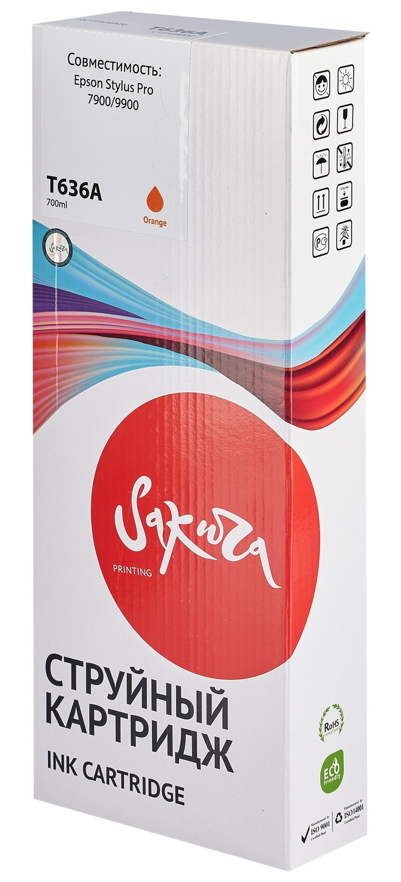 Картридж Sakura C13T636A00 (T636A Orange) поддерживает совместимость с рядом струйных принтеров и МФУ фирмы Epson. Расходный элемент легко устанавливается в печатную технику и обеспечивает ее бесперебойную работу благодаря точно подогнанной конструкции под оригинальный картридж. В емкости картриджа Sakura C13T636A00 (T636A Orange) содержится 700 мл чернил оранжевого цвета на пигментной основе. Они обеспечивают высокое качество печати при использовании любых печатных носителей. Чернила не смазываются по поверхности листа, не выгорают на солнце и быстро сохнут.