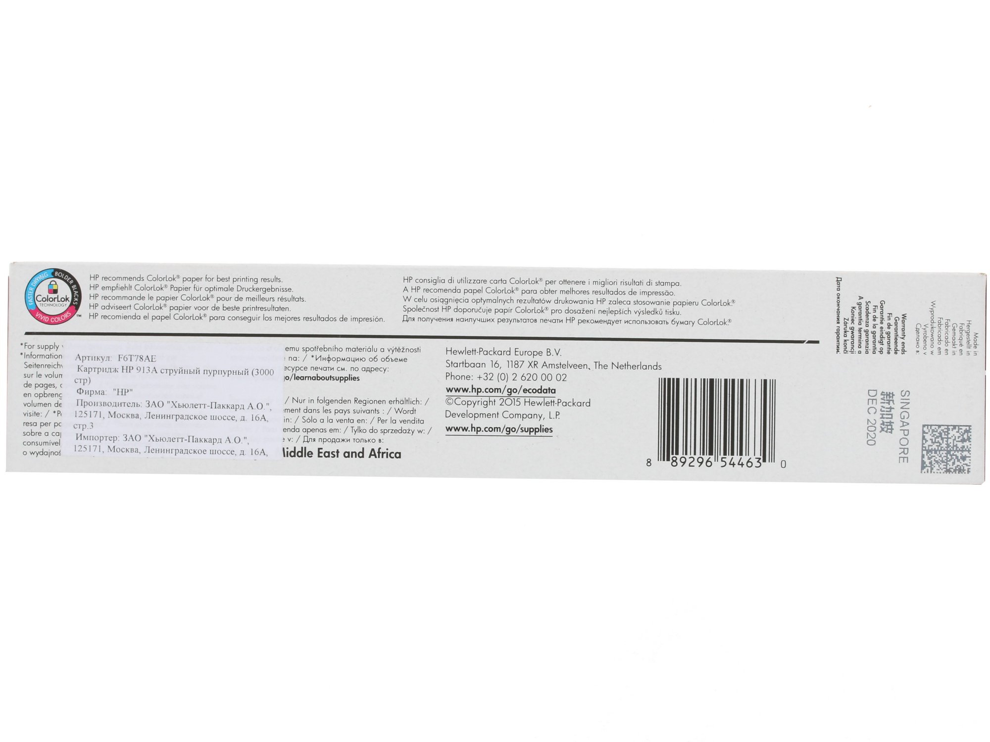 Картридж струйный HP 913A F6T78AE пурпурный для HP PW 352dw/377dw/Pro 477dw/452dw 3000стр.