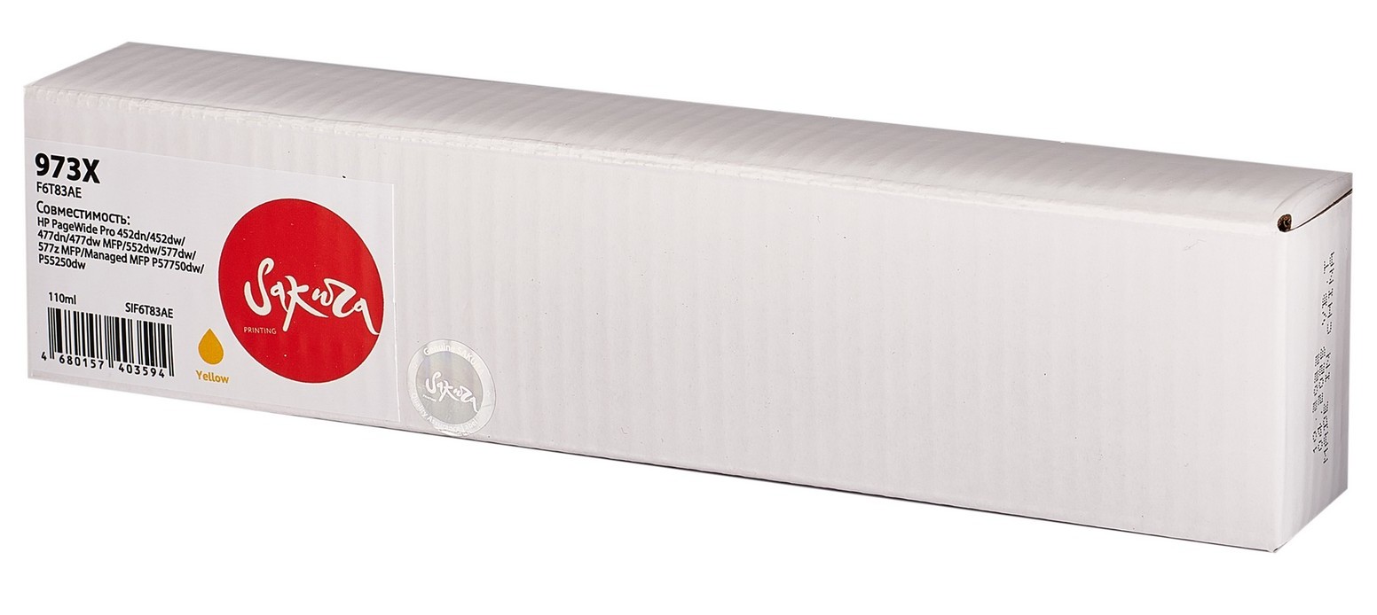 Картридж Sakura F6T83AE (№973X Yellow) поддерживает совместимость с определенными моделями струйных принтеров и МФУ фирмы HP. В емкости картриджа находится 110 мл чернил желтого цвета на пигментной основе. Благодаря идентичности картриджа Sakura F6T83AE (№973X Yellow) оригинальному расходному элементу он легко вставляется в каретку совместимого принтера и обеспечивает его бесперебойную работу. Чернила подойдут для печати на любых печатных носителях, они быстро сохнут, не смазываются и не выгорают от солнечных лучей.