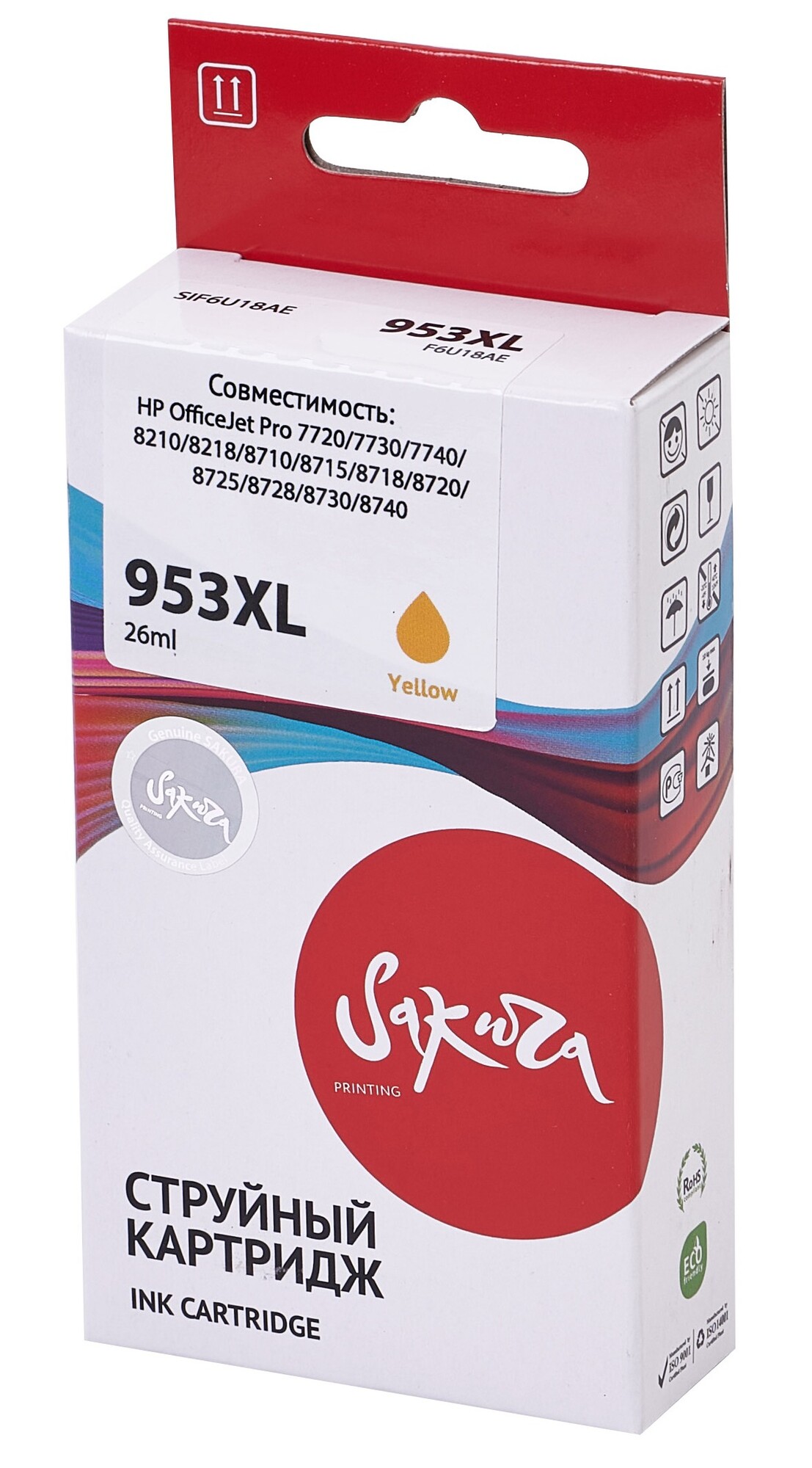 Картридж струйный Sakura F6U18AE (№953XL Yellow) для HP, желтый, 26 мл., 1600 к.
