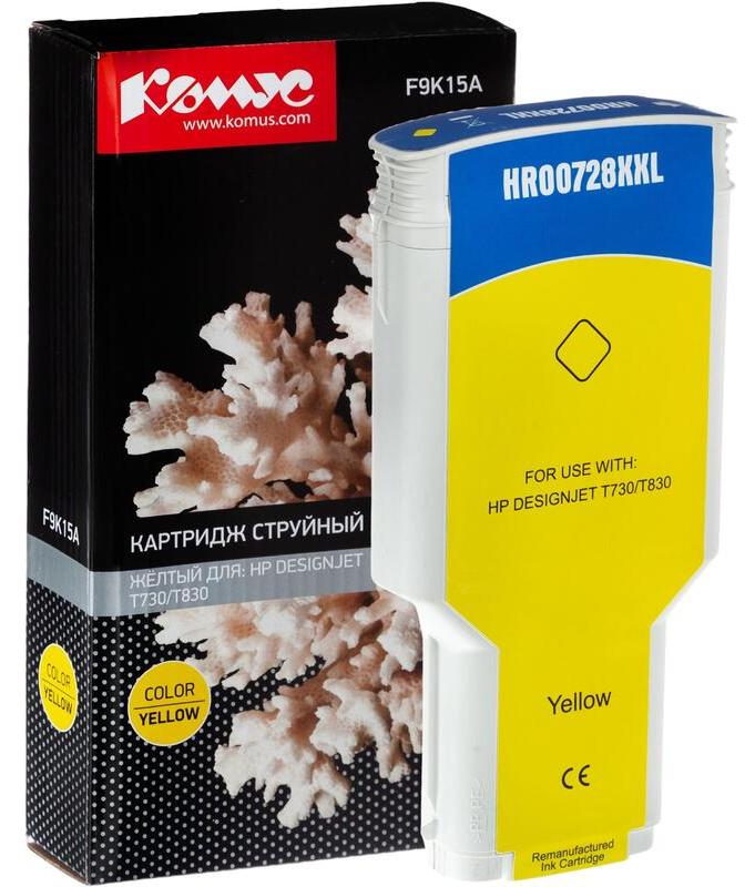 Картридж струйный HP F9K15A (HP 728) для DesignJet T730, T830. Желтый. 300 мл.