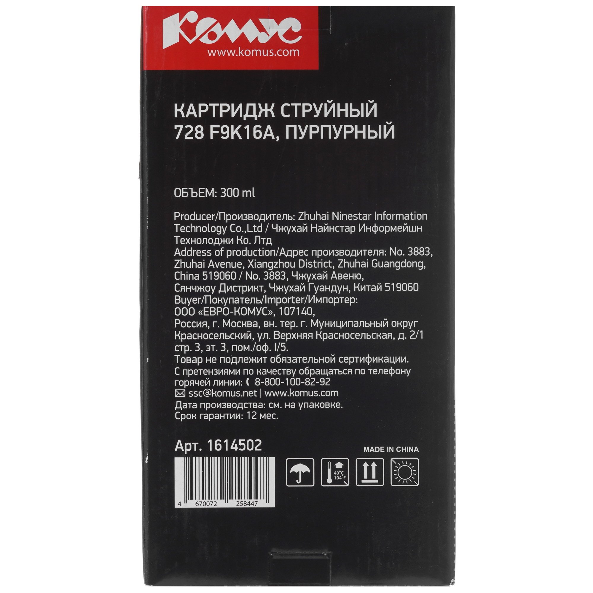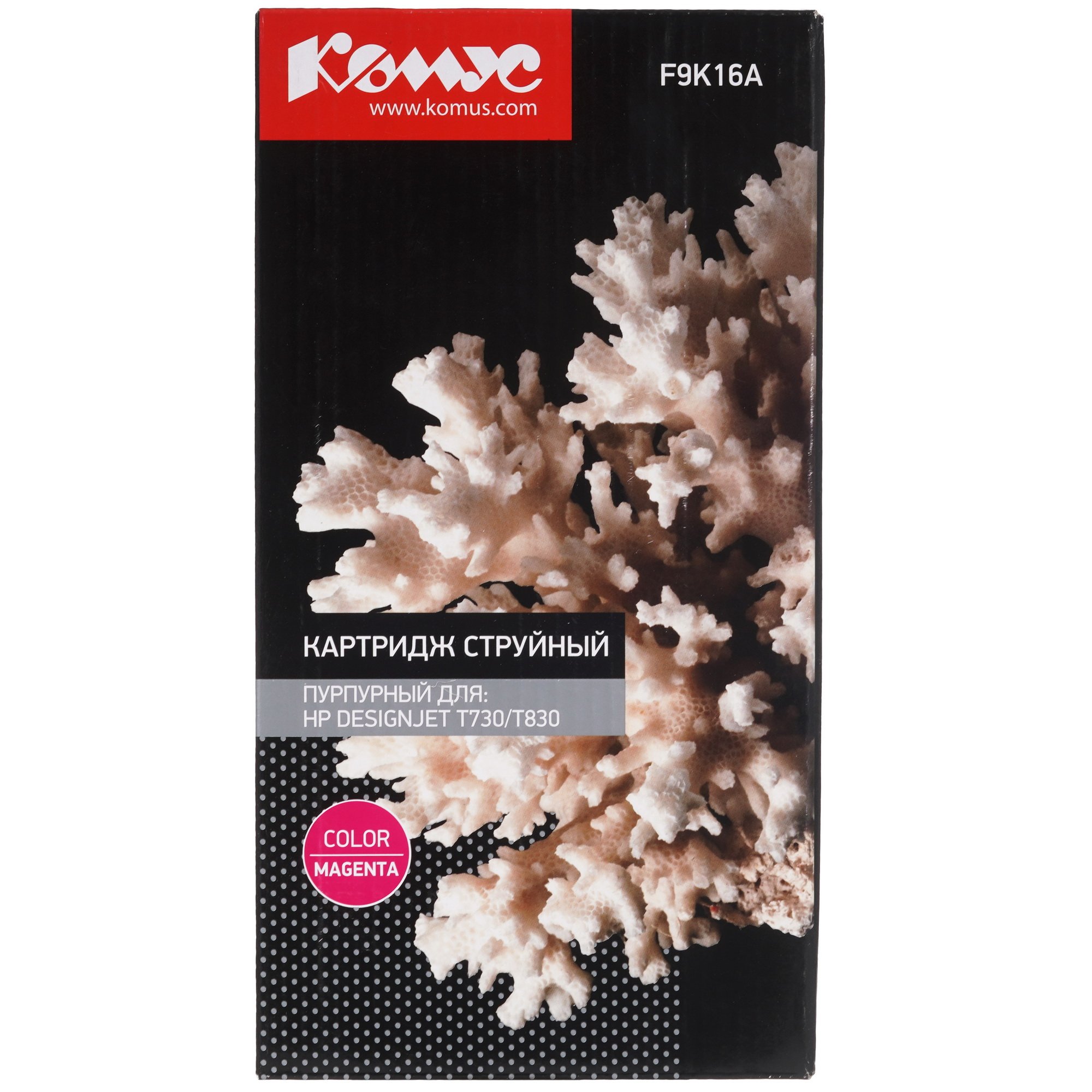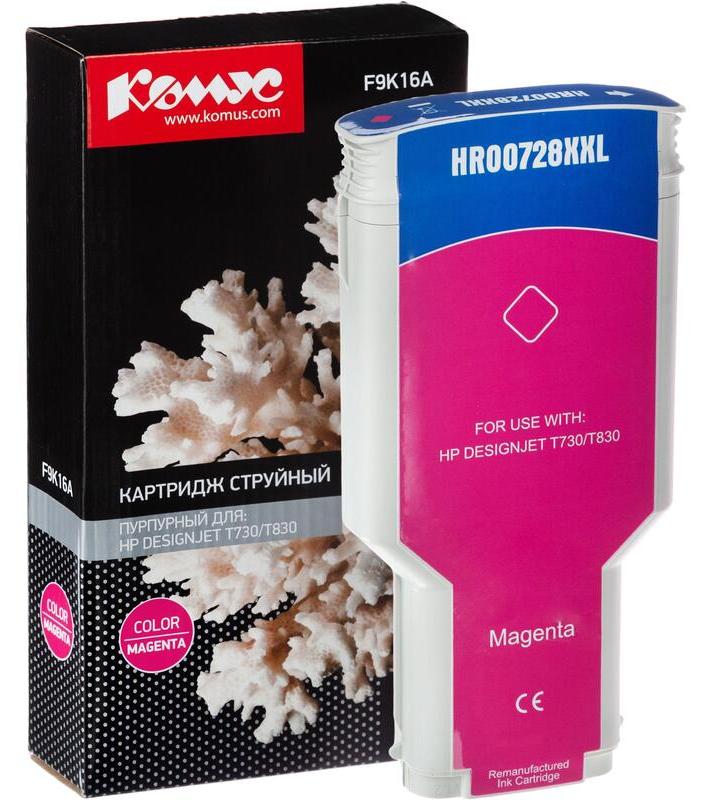 Картридж Комус 728 F9K16A обладает повышенной емкостью 300 мл. Благодаря чипу в конструкции расходного элемента печатающее устройство будет получать информацию о количестве отпечатанных страниц и оставшемся объеме чернил. Картридж Комус 728 F9K16A разработан для ряда струйных принтеров и МФУ фирмы HP. Благодаря тщательно подобранному составу пурпурные чернила хорошо впитываются в поверхность любого печатного носителя, не смазываются и не выгорают от солнечных лучей.