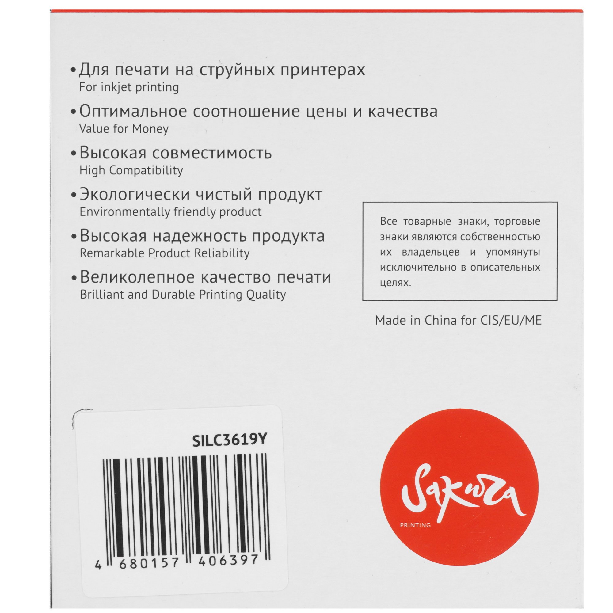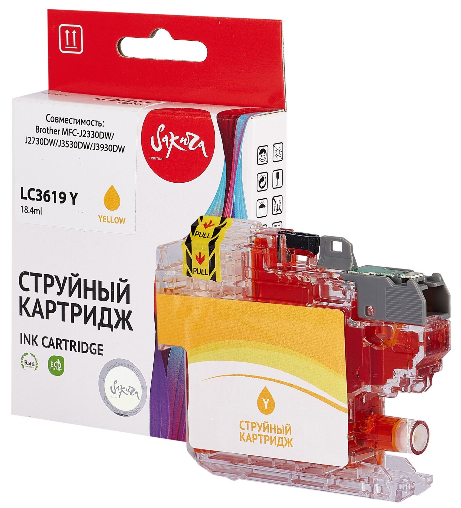 Картридж Sakura LC3619Y поддерживает совместимость с рядом струйных принтеров и МФУ фирмы Brother. Расходный элемент легко устанавливается в печатную технику и обеспечивает ее бесперебойную работу благодаря точно подогнанной конструкции под оригинальный картридж. В емкости картриджа Sakura LC3619Y содержится 18.4 мл чернил желтого цвета на пигментной основе. Они обеспечивают высокое качество печати при использовании любых печатных носителей. Чернила не смазываются по поверхности листа, не выгорают на солнце и быстро сохнут.