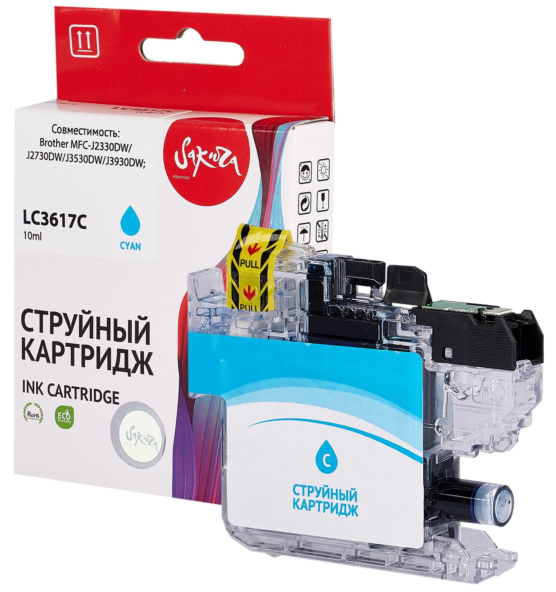 Картридж Sakura LC3617C – совместимый расходный элемент с чернилами голубого цвета, который можно использовать в струйных принтерах и МФУ фирмы Brother. Благодаря идентичной оригинальному картриджу конструкции модель легко устанавливается в каретку печатной техники и обеспечивает ее беспроблемную работу при печати. Одна емкость картриджа Sakura LC3617C содержит в себе 10 мл чернил на пигментной основе. При печати на любых носителях они не смазываются по поверхности и быстро высыхают.