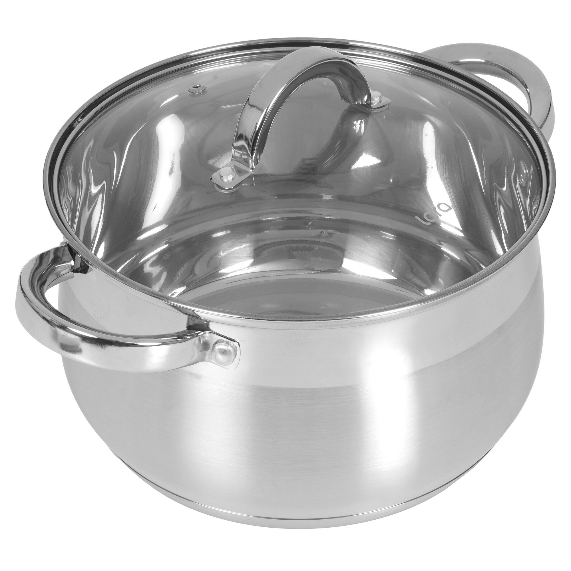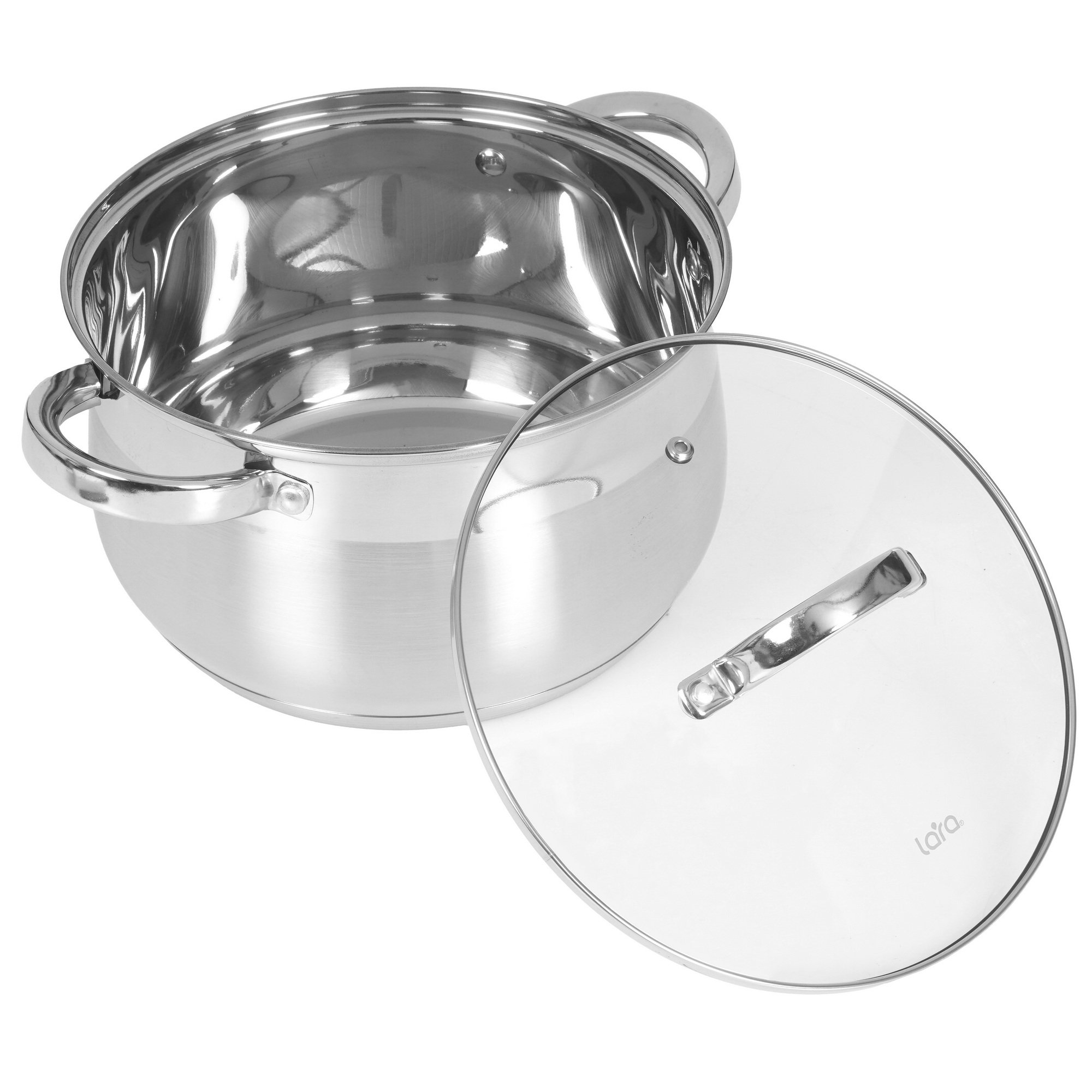 Кастрюля Lara из нержавеющей стали, стальные ручки, капсулированное индукционное дно, жаропрочная крышка предназначена для приготовления еды. Изделие легко мыть, что экономит время и силы. Дно равномерно распределяет тепло, что обеспечивает плавный нагрев и экономит время.