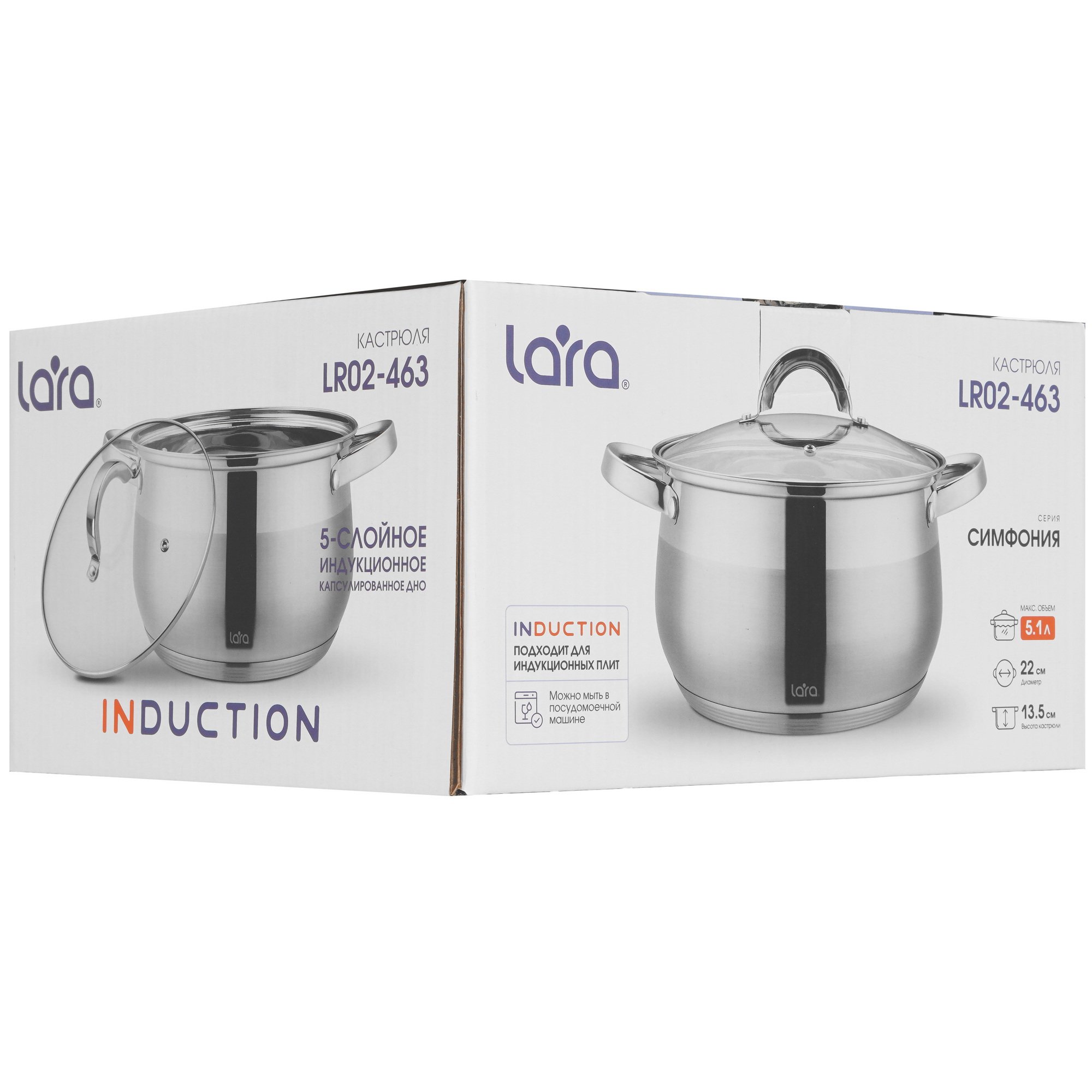 Кастрюля LARA СИМФОНИЯ LR02-463 5.1 л, 22x13,5, 5