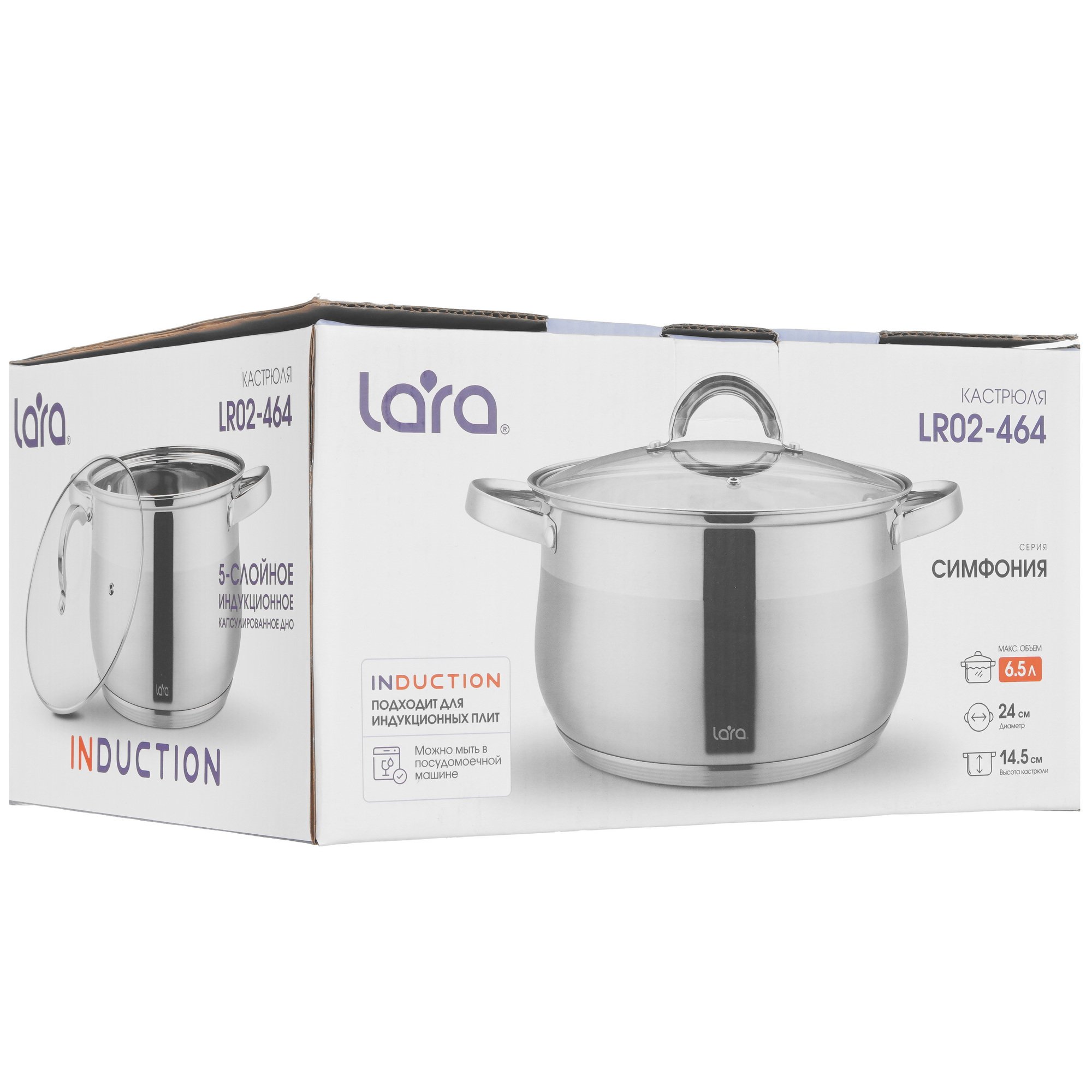 Кастрюля LARA СИМФОНИЯ LR02-464 6.5л, 24x14,5см,
