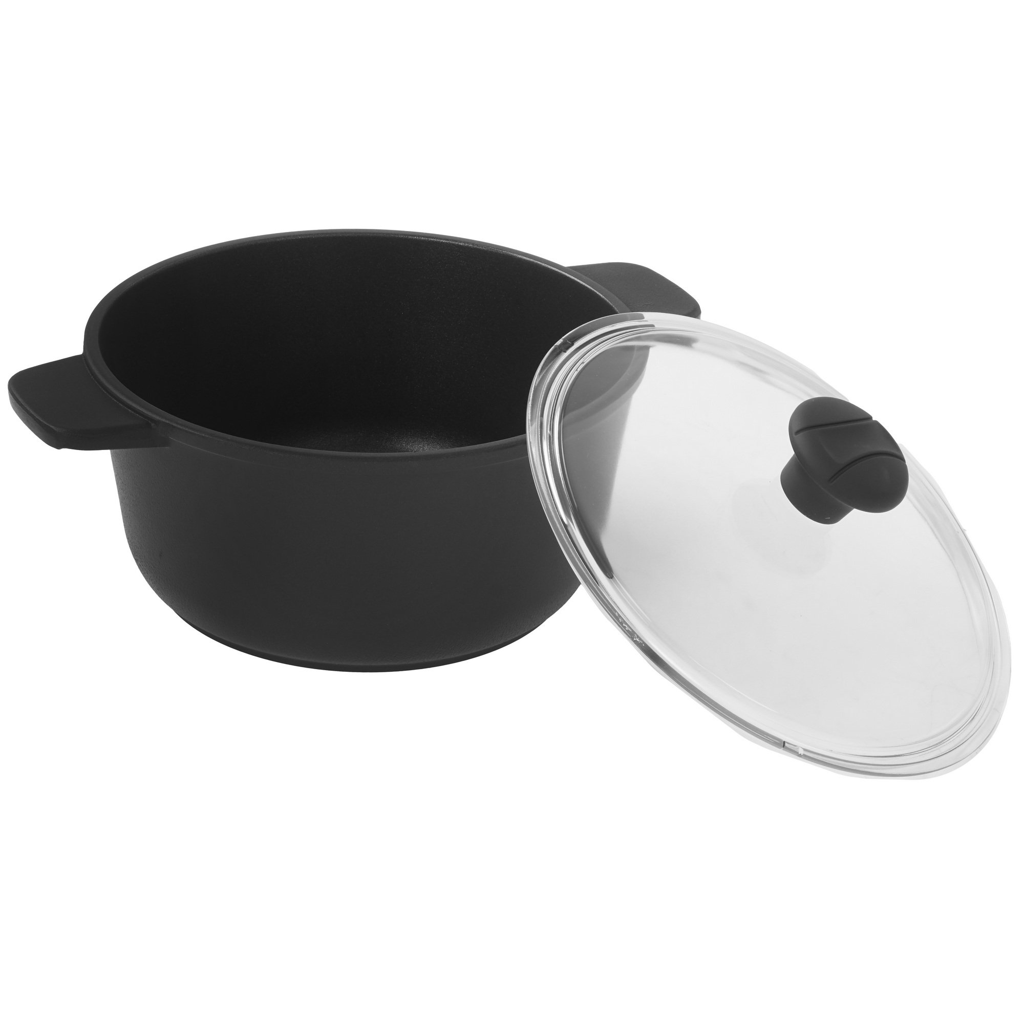 Кастрюля MAUNFELD Osvald черного цвета обладает объемом 3 л и диаметром 22 см с высотой стенок 6.8 см. Корпус из литого алюминия предусматривает внутреннее антипригарное покрытие, благодаря которому перед варкой ингредиенты можно предварительно обжарить прямо в кастрюле. Тушить блюдо можно под комплектной крышкой из стекла. MAUNFELD Osvald подходит для использования на любых типах плит, включая индукционные. Снять кухонную утварь с плиты позволят две ручки из алюминия.