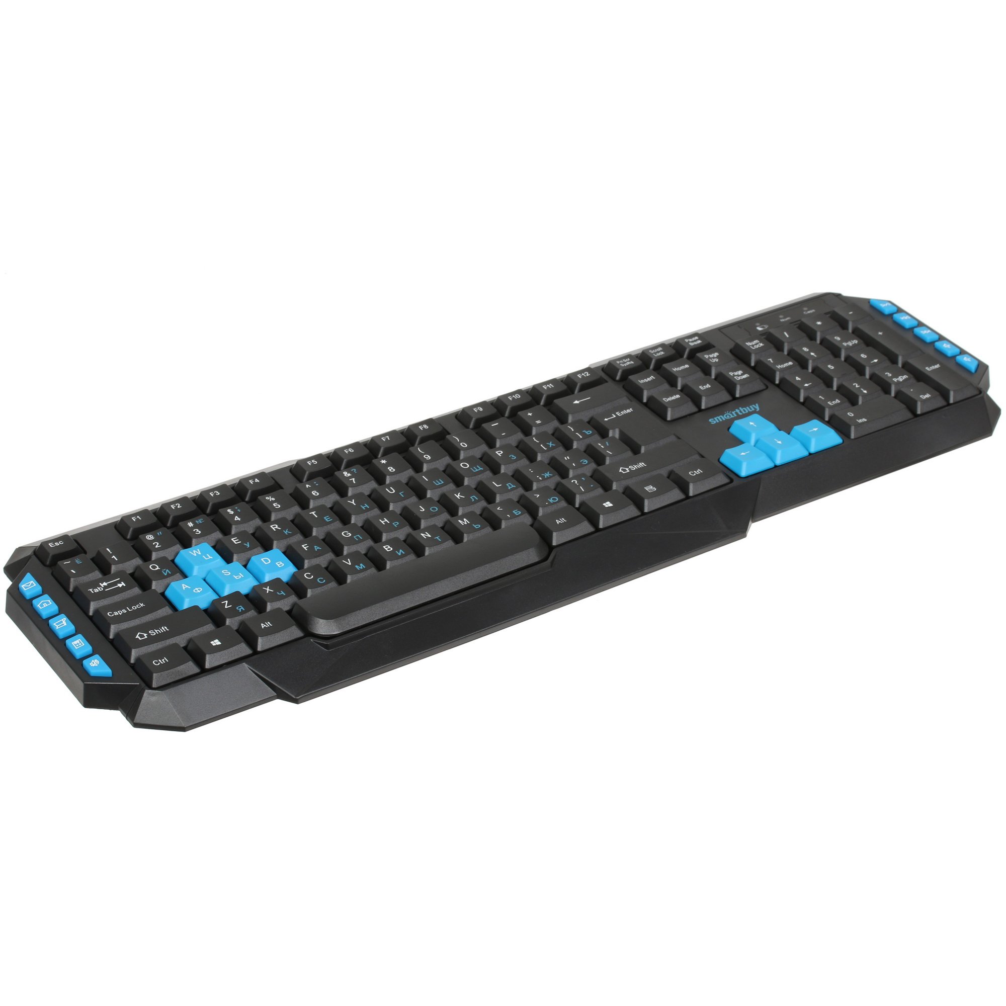 Клавиатура Smartbuy SBK-231AG-K − это удобное устройство ввода, которое обеспечивает комфорт как в работе, так и в игре. А все потому, что клавиатура обладает особенной конструкцией со 114 клавишами, включающей в себя цифровой блок и 10 дополнительных клавиш, открывающих доступ к Интернету и функциям мультимедиа. Дополнительные клавиши расположены с двух сторон устройства и выделены синим цветом. Также конструкция корпуса предполагает наличие небольшой подставки под кисти рук, что снижает нагрузку на них, позволяя проводить больше времени за компьютером.