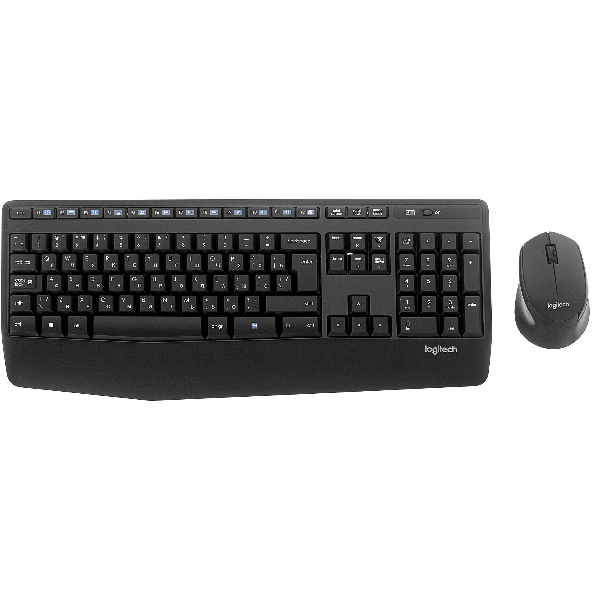 Клавиатура+мышь Logitech Wireless Desktop MK345 – универсальный комплект, изготовленный из черного пластика. Он станет удобным решением для организации офисного или домашнего рабочего места. За счет того, что оба устройства лишены проводов и подключаются к компьютеру за счет USB, на столе не будут мешаться ненужные и зачастую раздражающие шнуры.