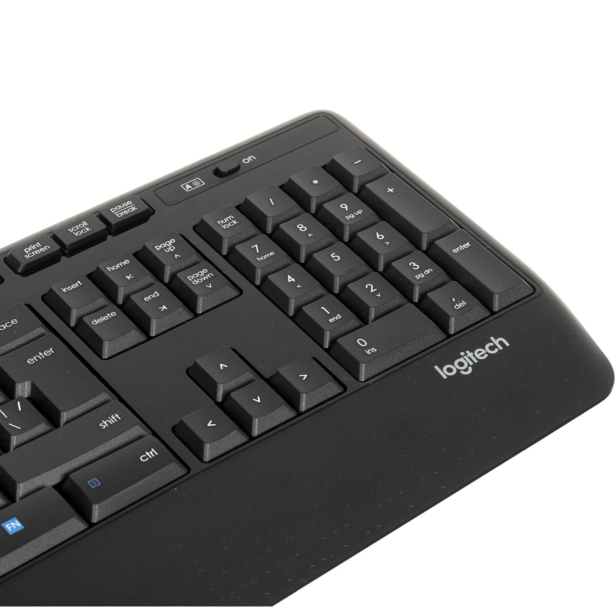 Полноразмерная клавиатура мембранного типа состоит из 104 кнопок. Модель обладает влагозащищенной конструкцией и удобной подставкой для рук. Оптическая светодиодная мышь имеет разрешение 1000 dpi и состоит из 3 клавиш. Ее удобное матовое покрытие препятствует скольжению устройства в ладони. Питание и клавиатура, и мышь Logitech Wireless Desktop MK345 получают от батареек типа AA.