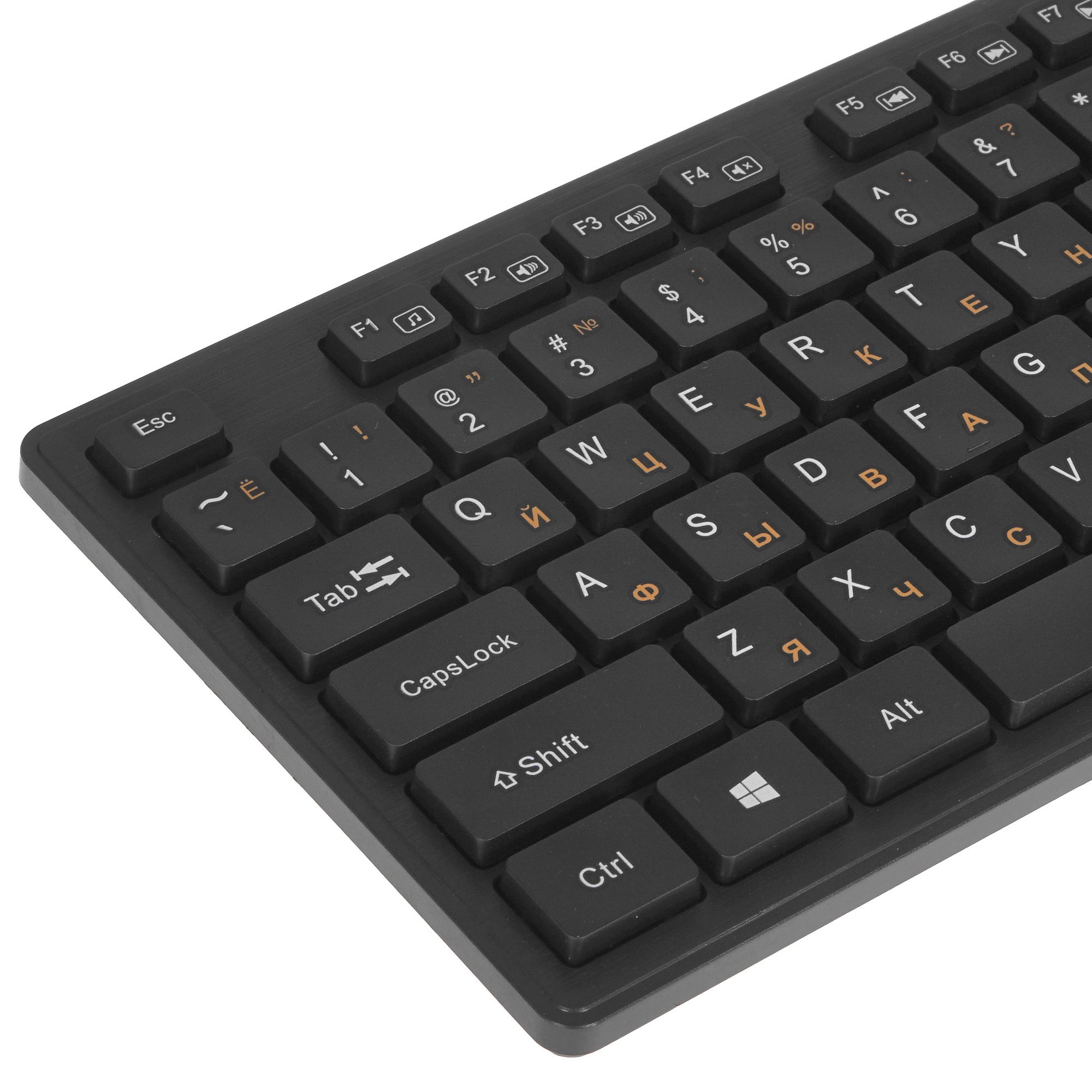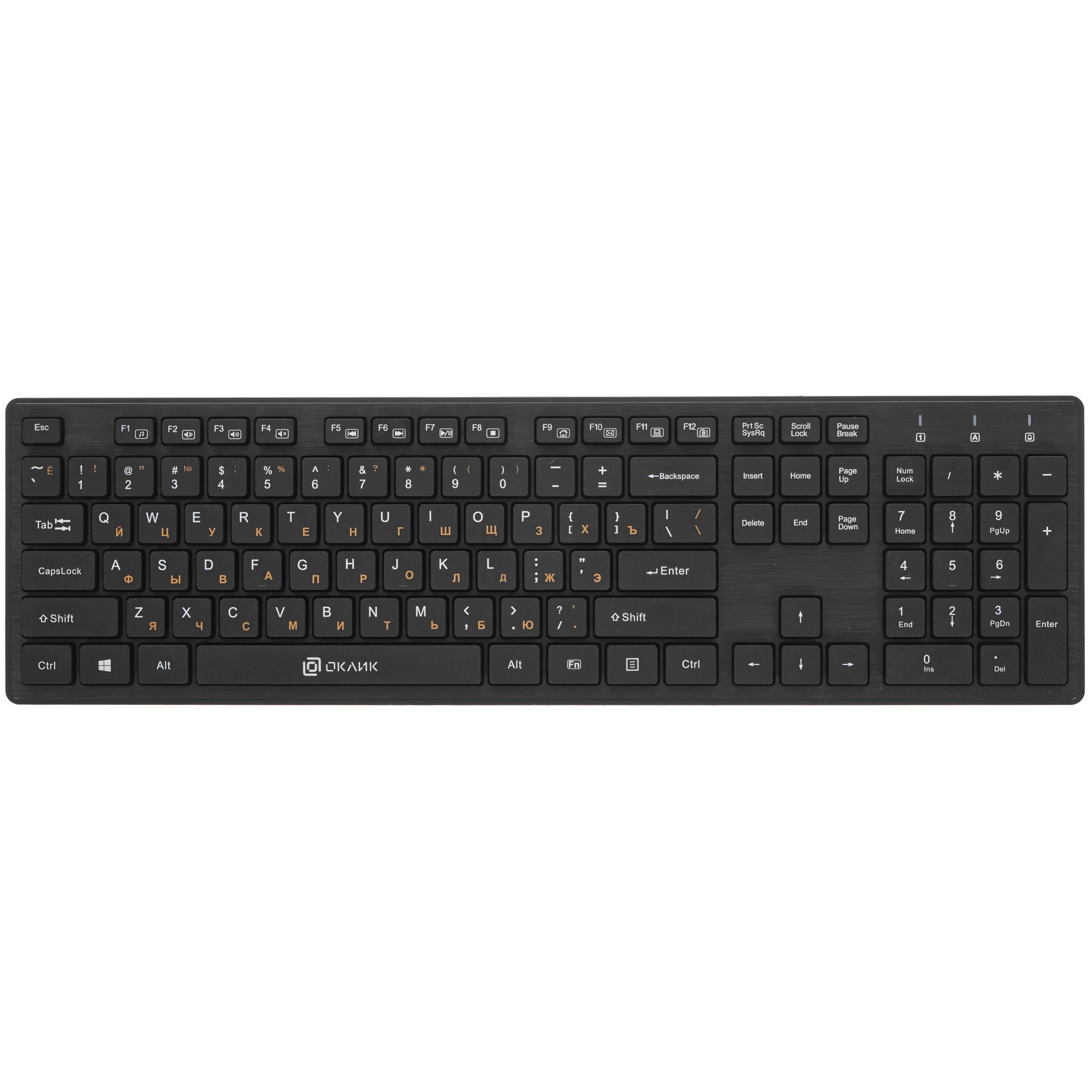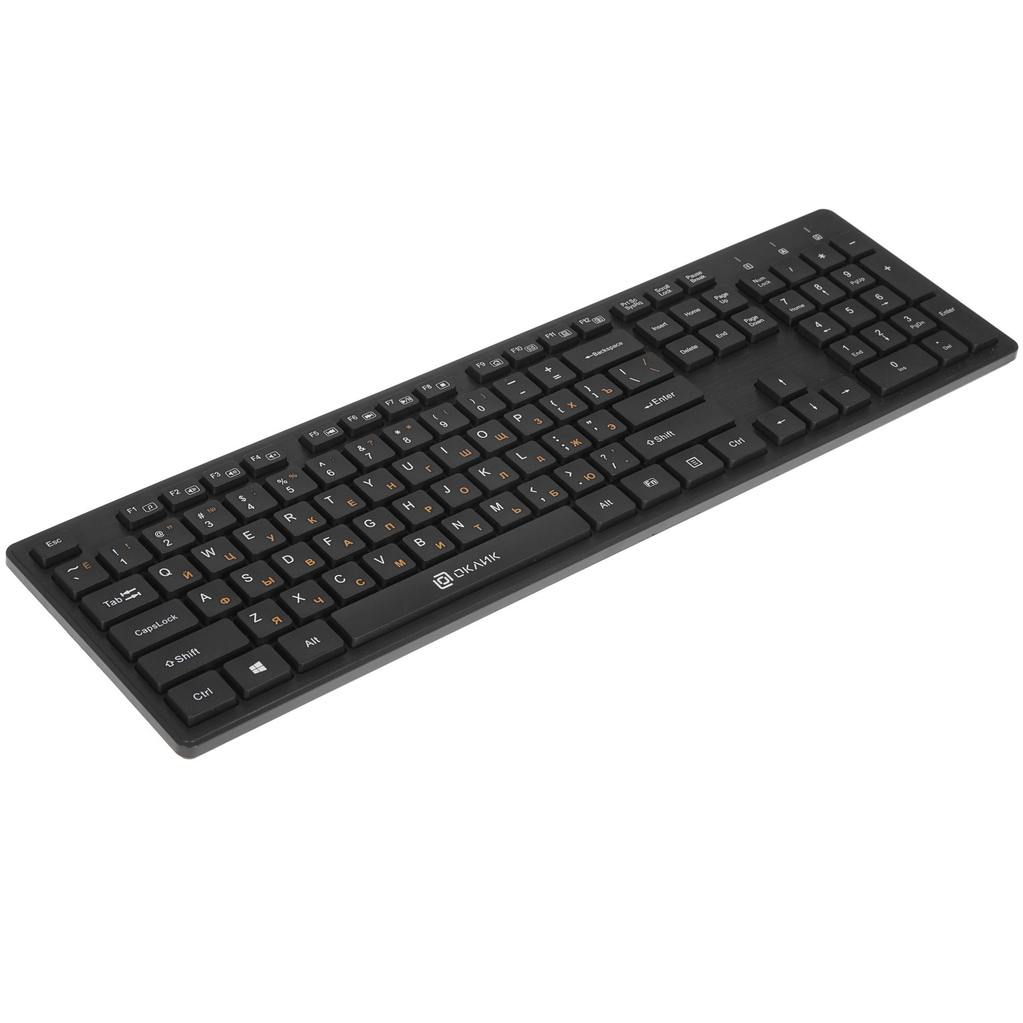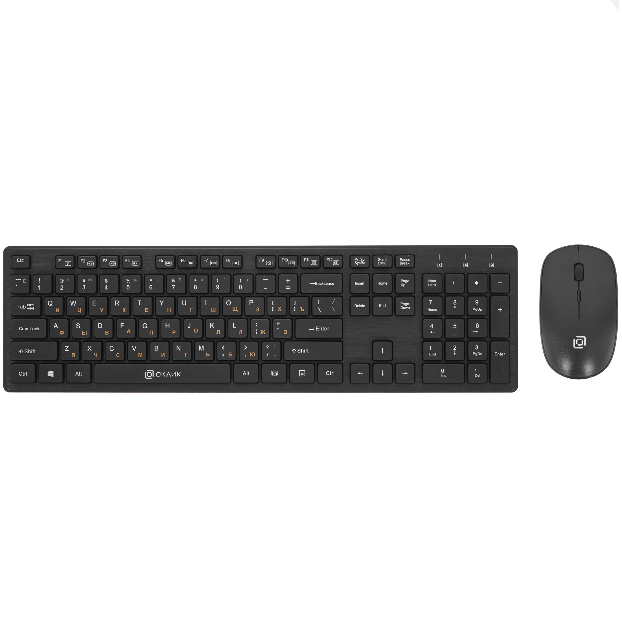 Клавиатура+мышь беспроводная Oklick 240M – удобный набор для работы со стильным черным дизайном. Оба устройства подключаются к ПК через общий USB-ресивер с дальностью действия 10 м. Это позволит разместить мышь и клавиатуру в любом удобном месте и даже управлять ТВ с дивана.