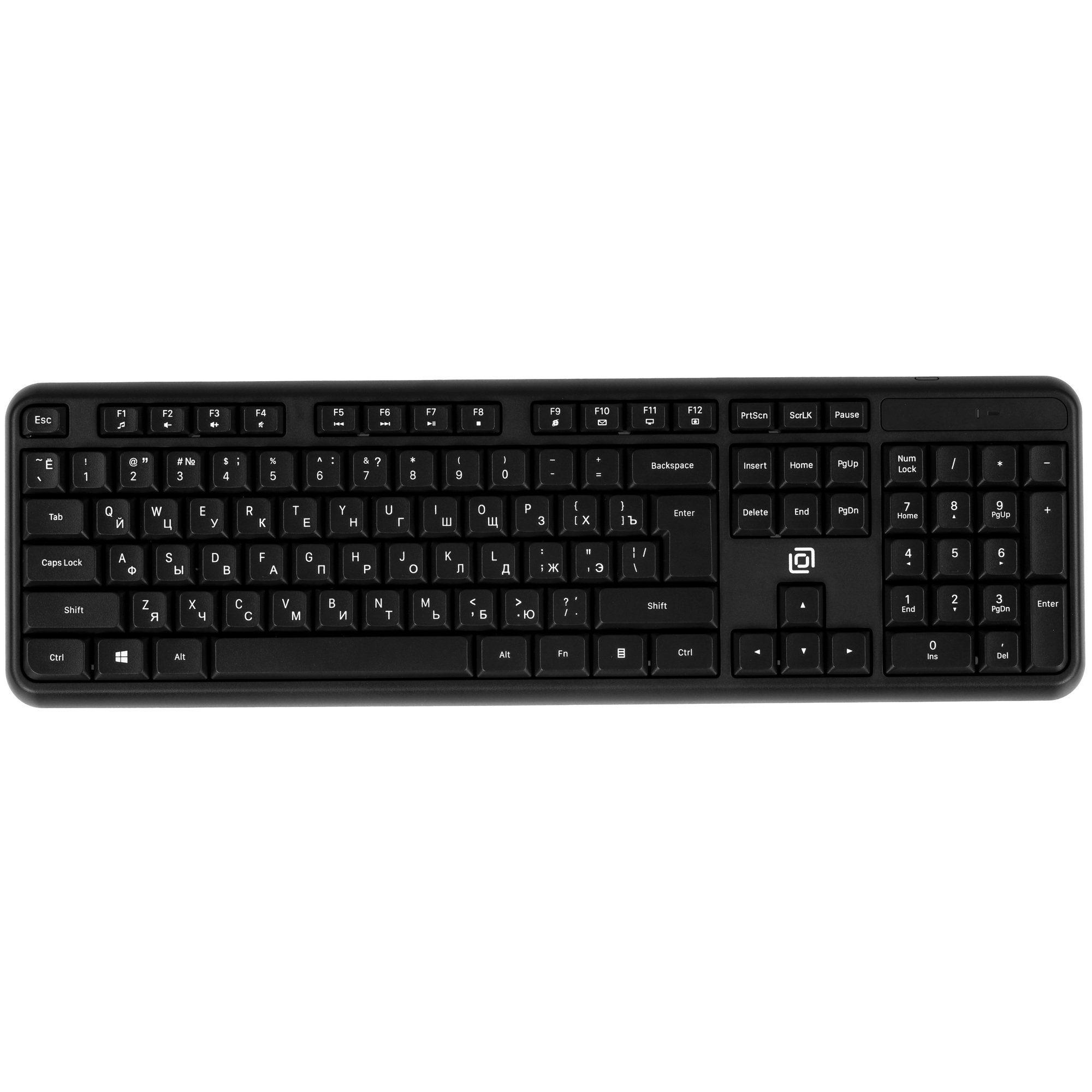 Клавиатура Оклик S277W имеет мембранную конструкцию крепления кнопок, поэтому при ее работе вы не будете слышать щелчков, как при работе на механическом устройстве. Клавиатура защищена от попадания воды, то есть пролитый чай не вызовет ее поломки. Устройство относится к полноразмерным, поэтому на нем есть цифровой блок и полный набор клавиш F. Мышь и клавиатура работают от батареек АА, ААА.