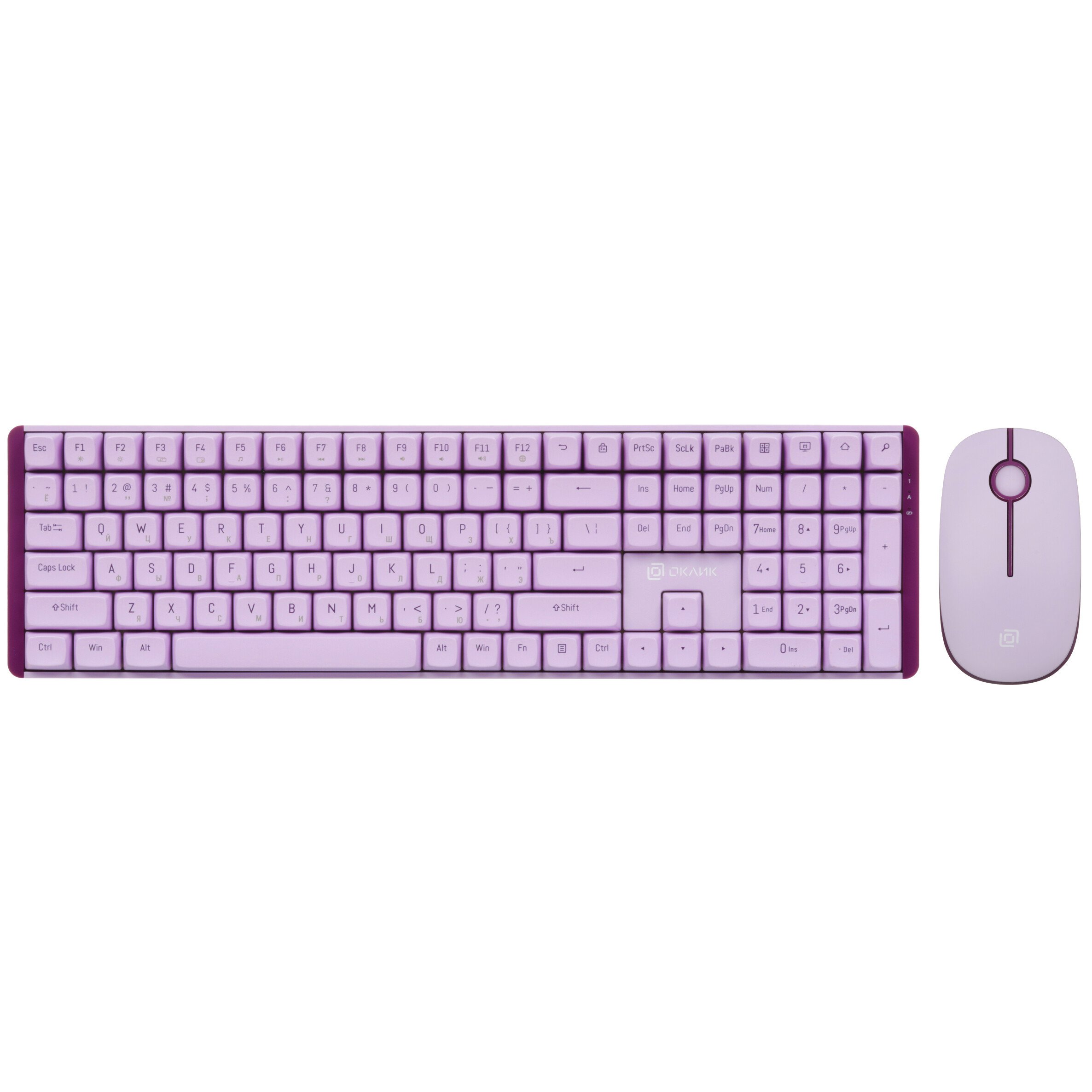 Комплект клавиатура+мышь Оклик S315W беспроводной USB 1600 DPI сиреневый (1978643)