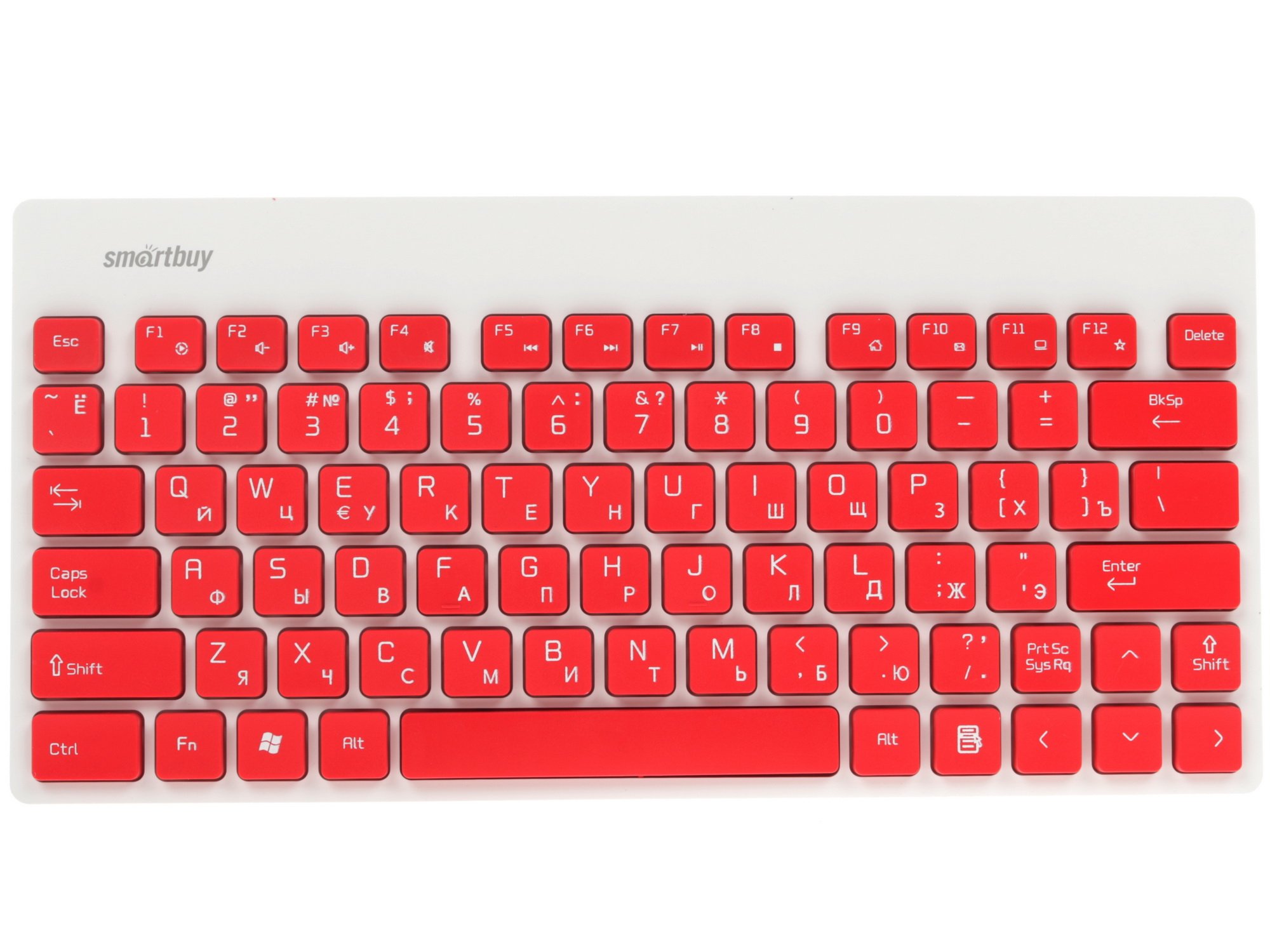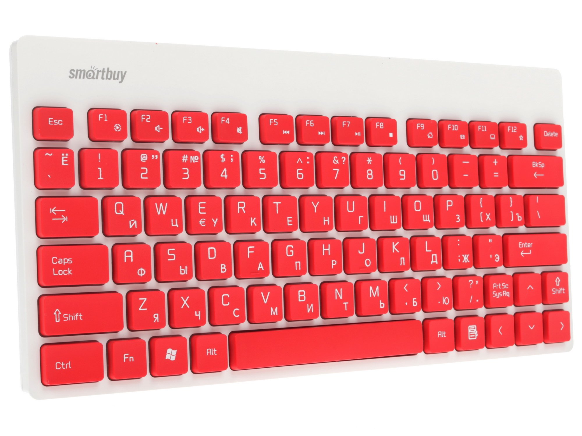 Клавиатура+мышь Smartbuy 220349AG привлекает внимание компактными габаритами, эргономичным дизайном и яркой бело-красной расцветкой. Клавиатура оснащена 79 основными клавишами и кнопками функций. Русская раскладка оформлена в белой расцветке. Применяется мембранный механизм и островное исполнение.