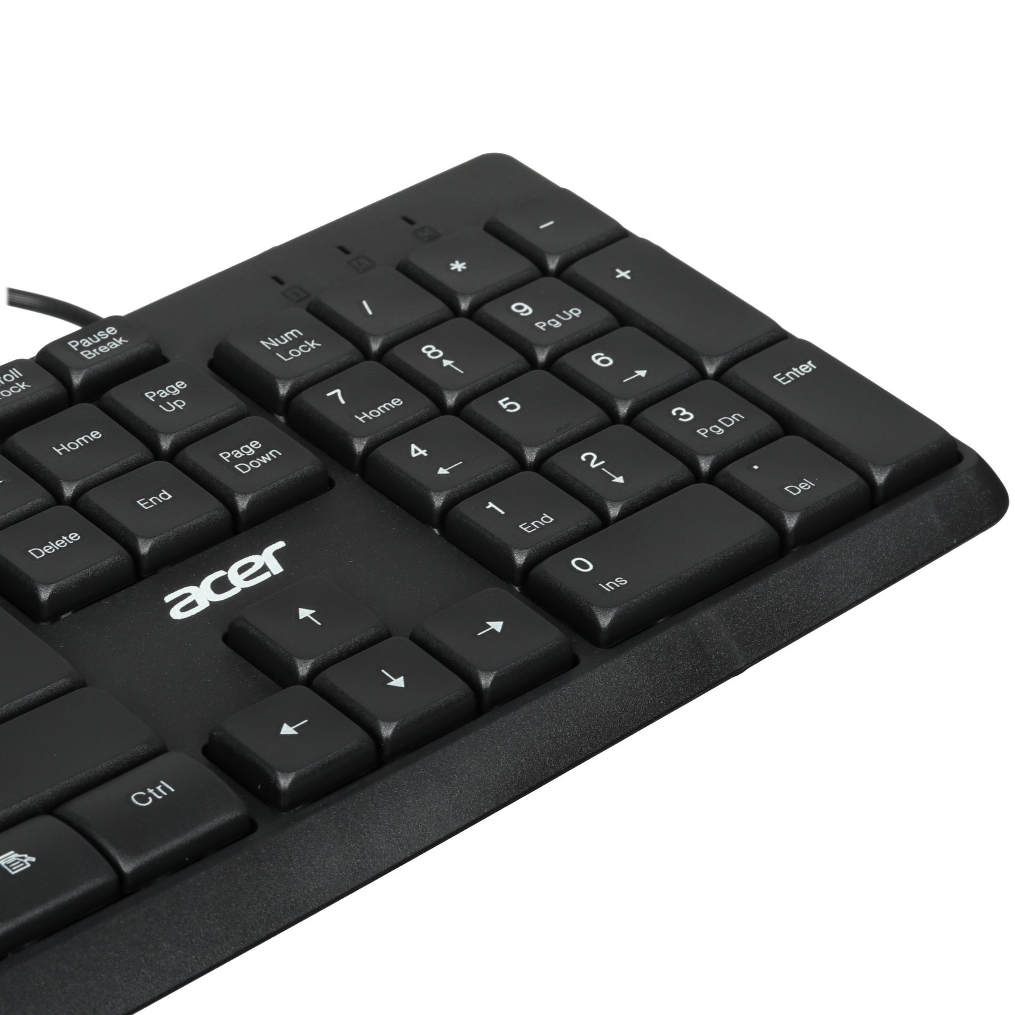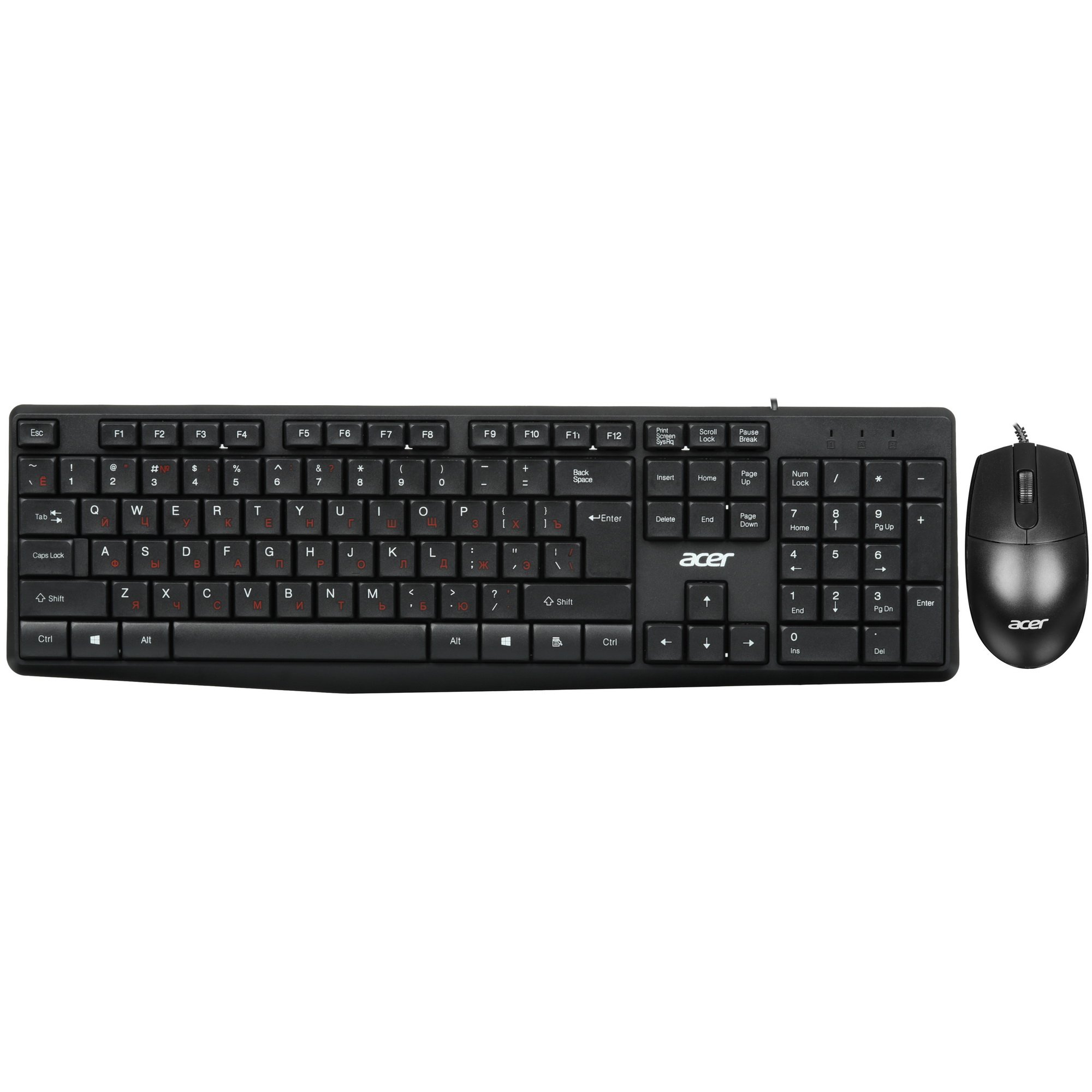 Клавиатура+мышь проводная Acer OMW141 подключается к необходимому устройству через USB-кабель. Конфигурацией клавиатуры предусмотрено 104 низкопрофильные клавиши с плоской поверхностью для уменьшения нагрузки на пальцы. Цифровой блок служит для обработки числовых данных.