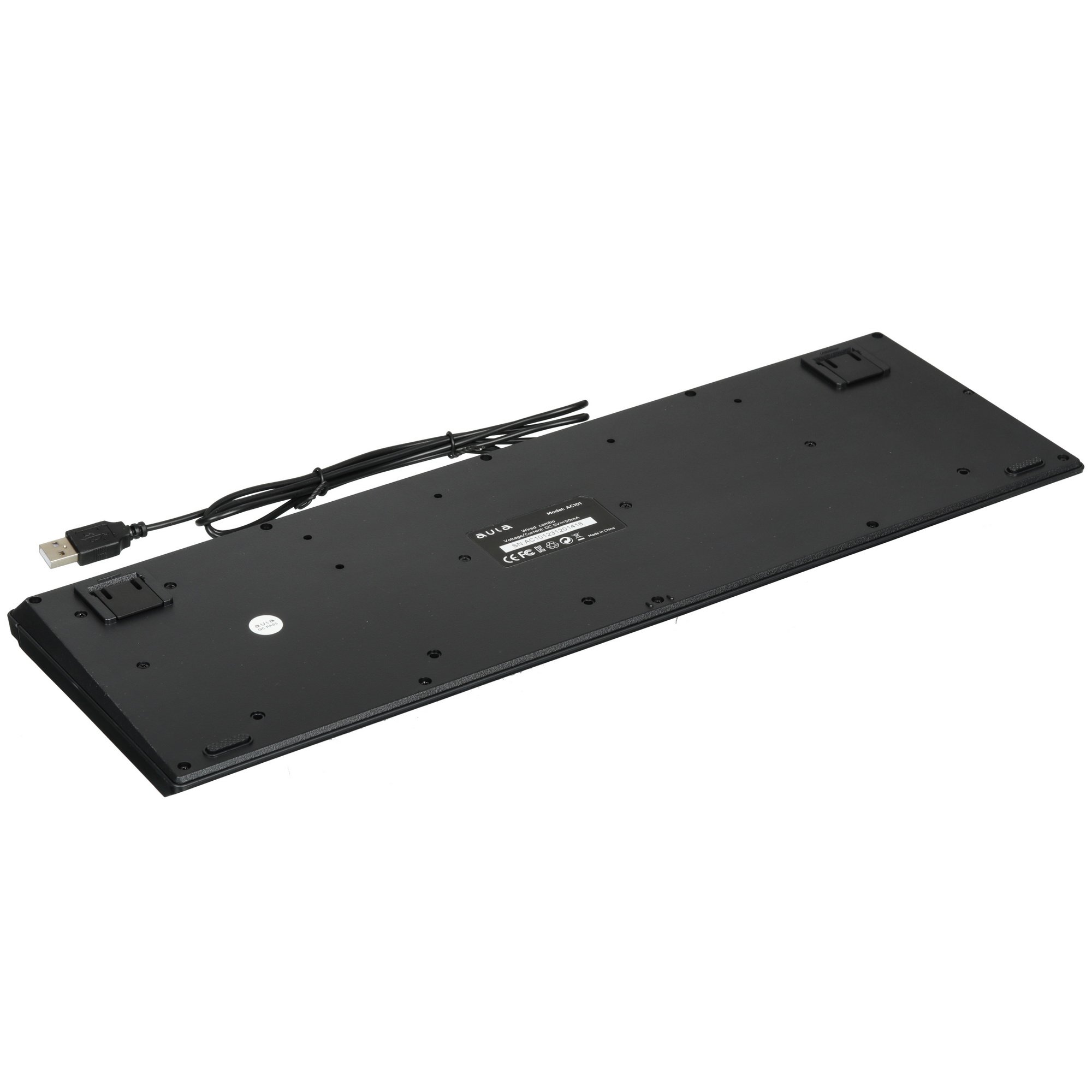 Клавиатура+мышь проводная AULA AC101 подключается к необходимому устройству через USB-разъем. Конструкцией клавиатуры предусмотрено 104 кнопки, в том числе цифровой блок для ввода числовых данных.
