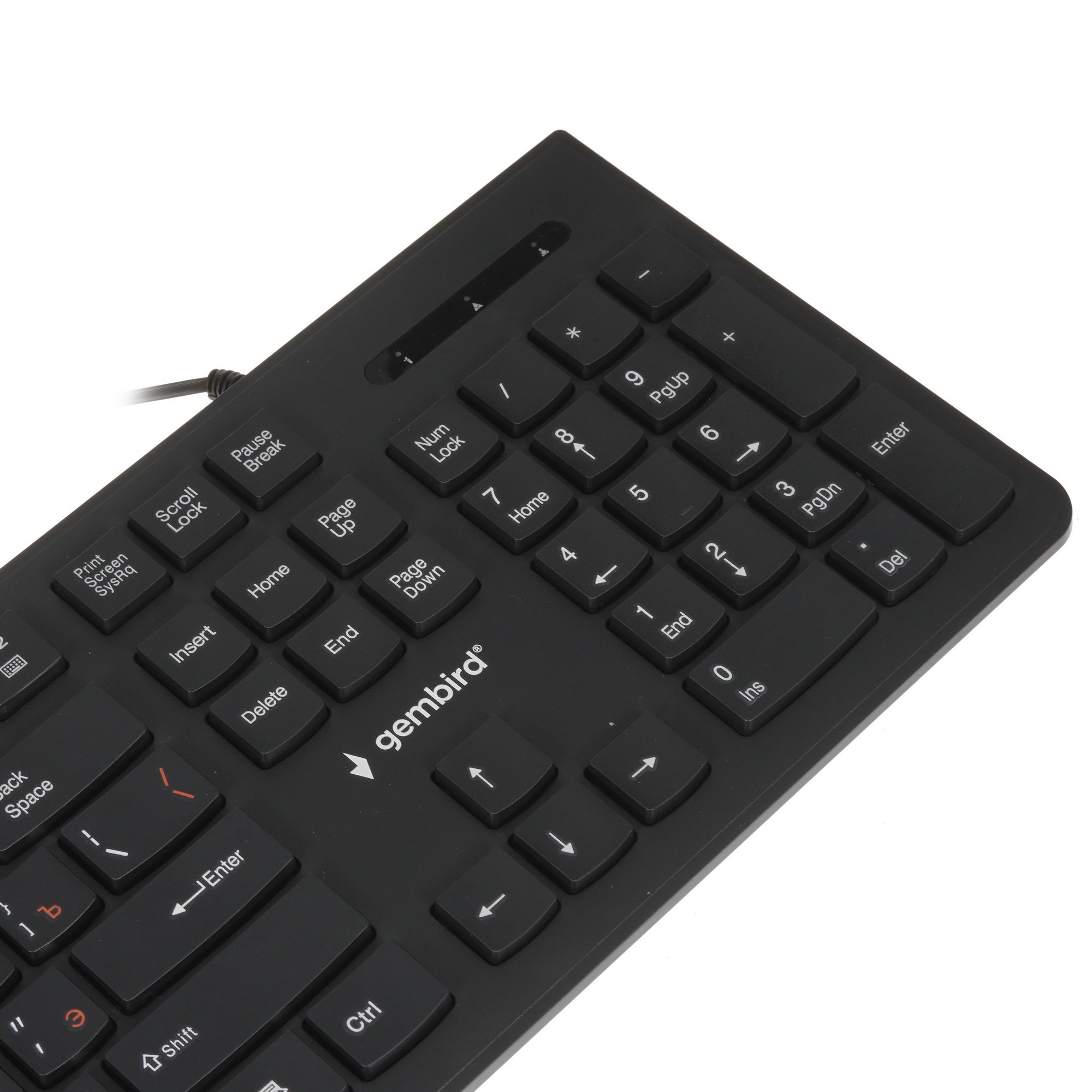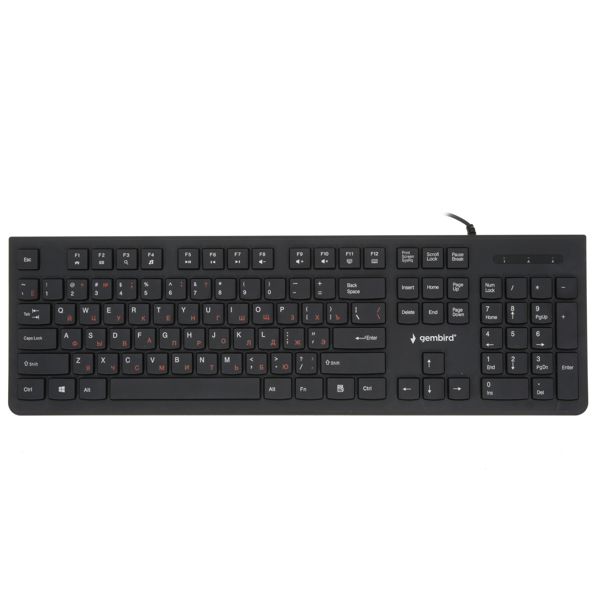 Клавиатура+мышь проводная Gembird KBS-9050 представлены в классическом черном дизайне. Мембранная клавиатура имеет полноразмерное исполнение с 104-мя низкопрофильными клавишами, русская раскладка на которых обозначена красным цветом. Имеется набор основных клавиш с цифровым блоком и Fn.