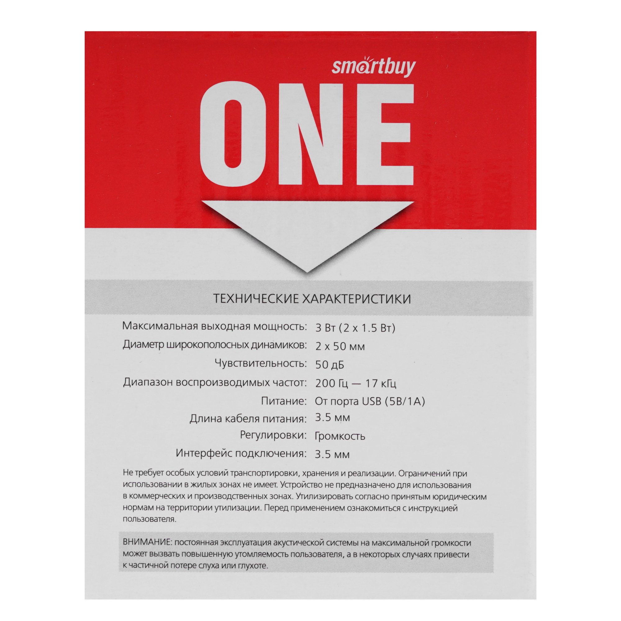 Колонки SmartBuy ONE выполнены в черном корпусе с регулятором громкости на задней панели. Устройство со стандартным разъемом для подключения jack 3.5 mm и питанием от USB-порта – оптимальный вариант для компьютера. Мощности двух динамиков по 1.5 Вт хватает для вывода звука при просмотре видео, прослушивании музыки и онлайн-общения по сети.