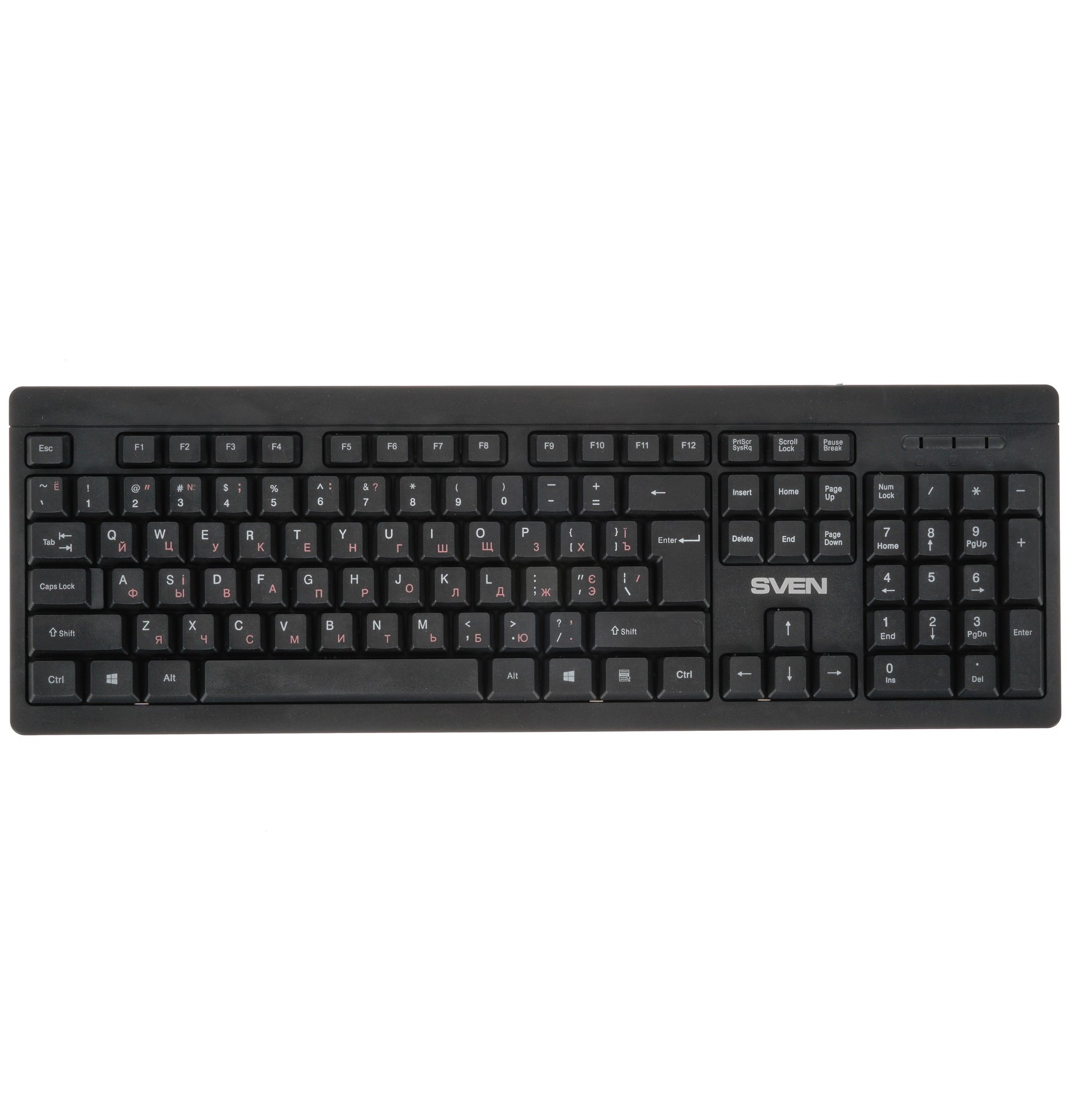 Клавиатура+мышь проводная SVEN KB-S320C – комплект, оптимизированный для повседневной работы с офисными редакторами и интернет-страницами как дома, так и в офисе. В наборе SVEN KB-S320C поставляются клавиатура с 104 мембранными клавишами для комфортной печати и оптическая светодиодная мышь на 1000 dpi эргономичной формы. В оснащение мыши входят 3 стандартные кнопки для простого и точного управления. Подключение клавиатуры и мыши осуществляется проводным способом посредством кабеля USB, что также подчеркивает широкую совместимость с ПК и другим оборудованием.
