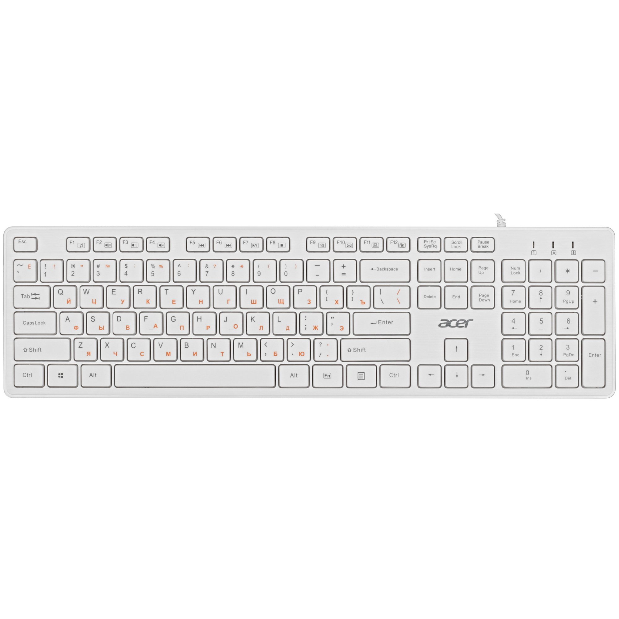 Клавиатура проводная Acer OKW123, USB, белый